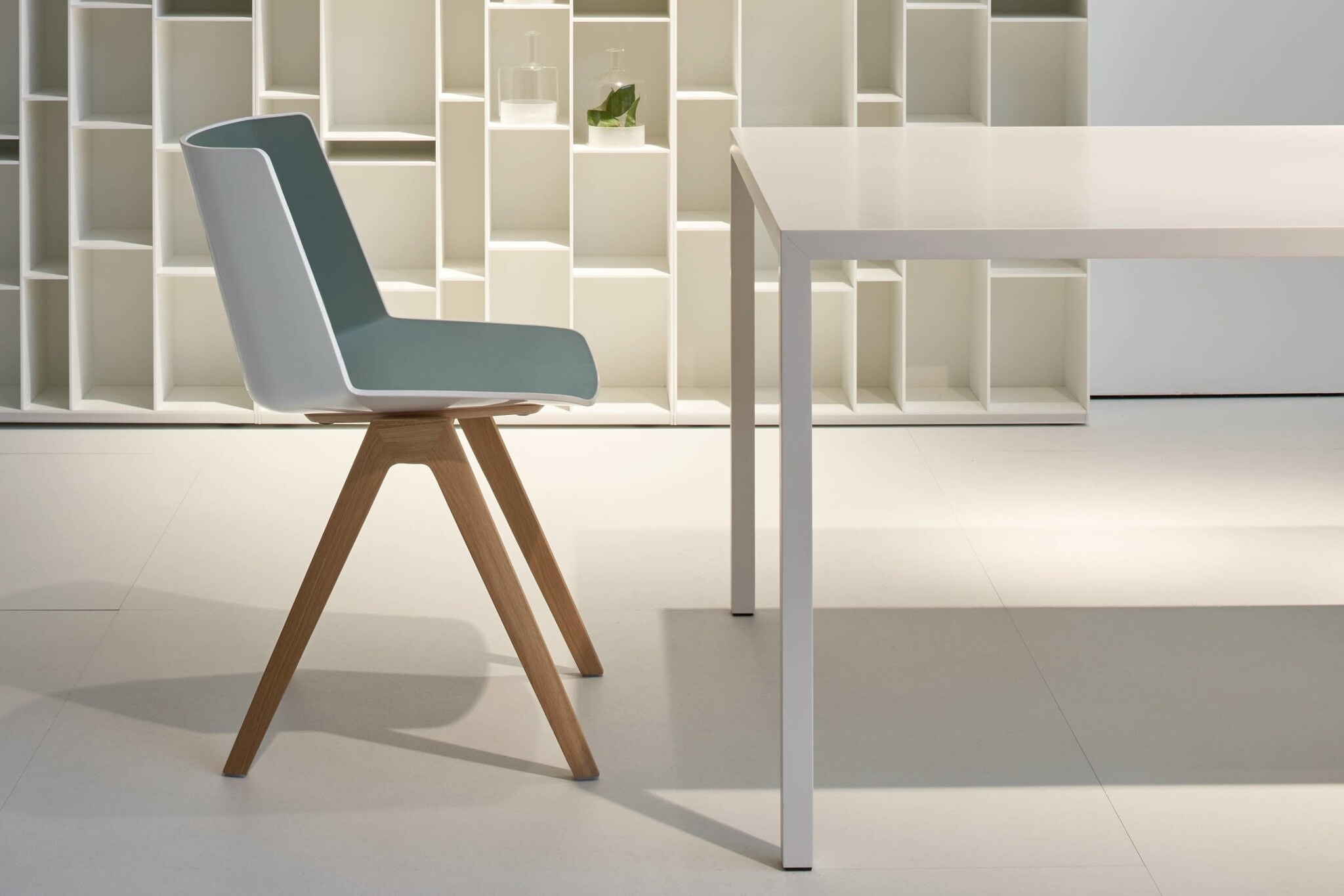 De Aiku stoel van MDF Italia combineert een verfijnd design met hoge functionaliteit door middel van een polypropyleen kuip met dubbele finish: een glanzende buitenkant, in zwart of wit verkrijgbaar, en een matte binnenkant verkrijgbaar in verschillende kleuren. Kenmerken van de MDF Italia Aiku stoel De stoel is verkrijgbaar met verschillende onderstellen: een vierpoots onderstel of een slede onderstel met of zonder armleggers, eventueel met schrijfblad.