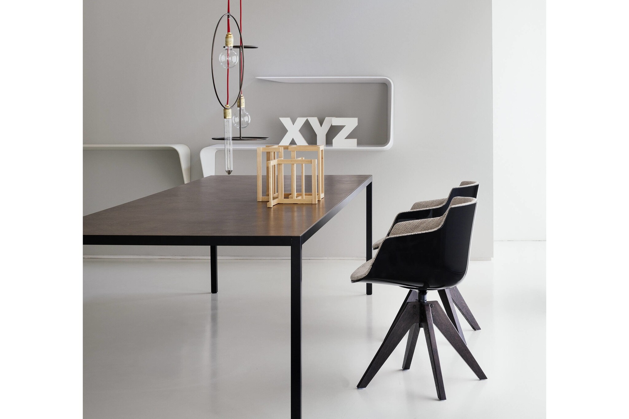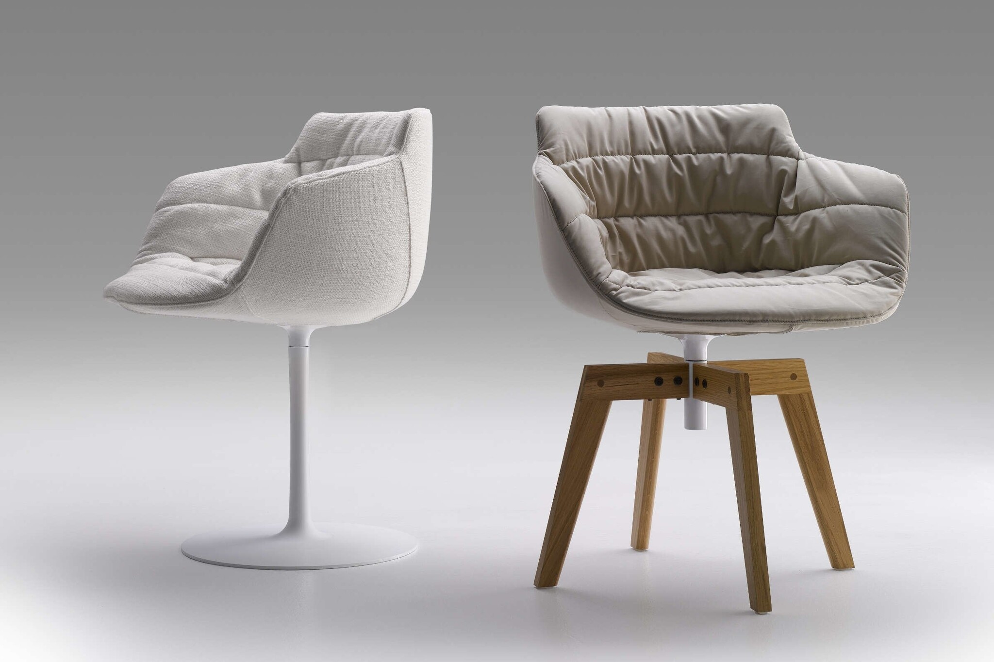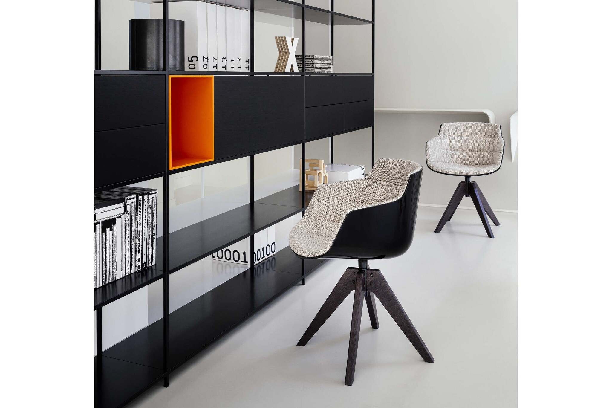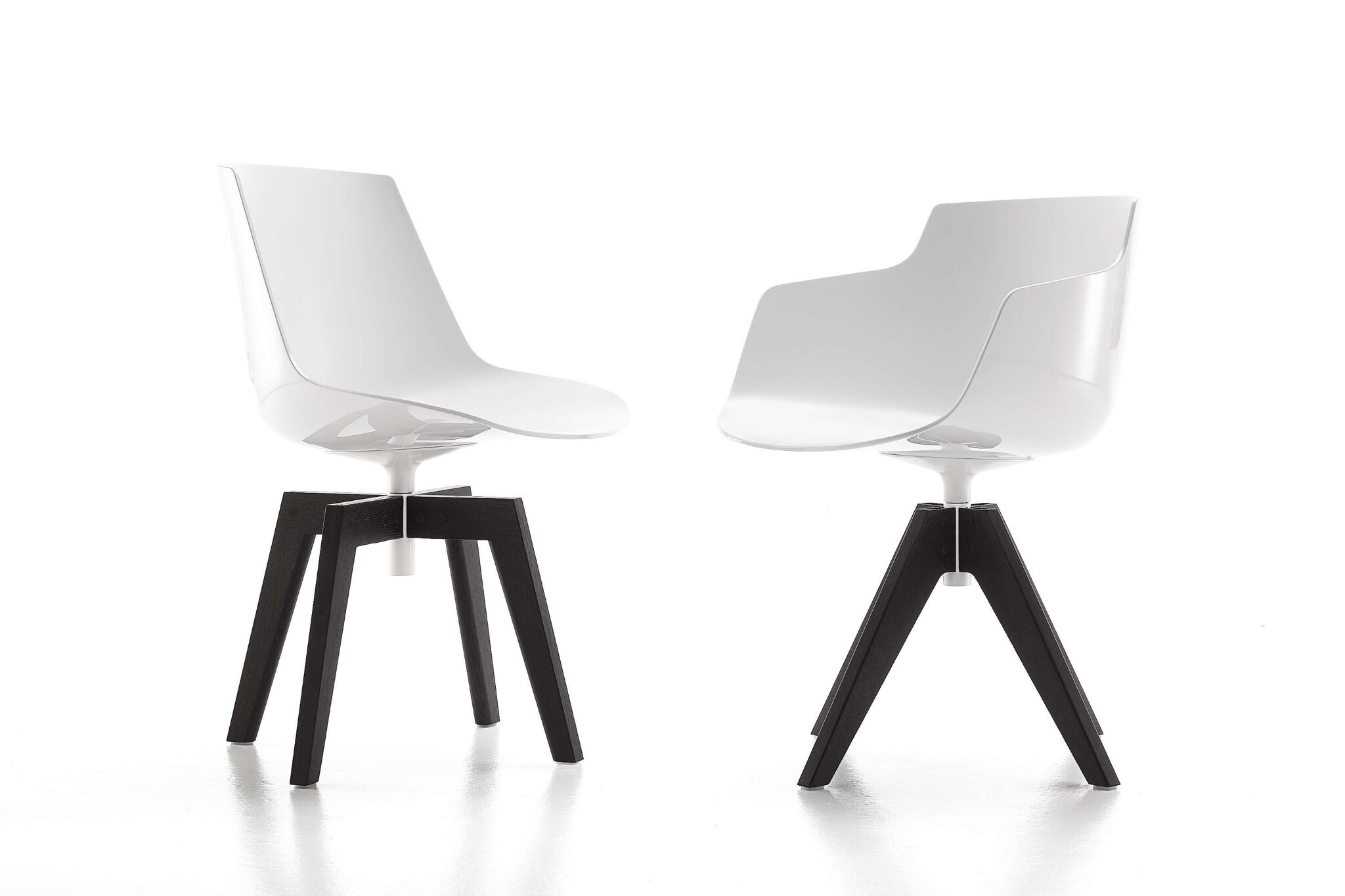 Mdf Italia Flow Armchair bestaat uit een familie van stoelen waarbij gekozen kan worden uit vele verschillende onderstellen. De kuip kan met of zonder bekleding. Zonder bekleding is er keuze tussen een 'soft touch' polyester kuip in hoogglans wit of zwart of in mat zwart, maar ook een harde polyethyleen kuip in mat wit of zwart. Kiest u voor bekleding dan is de totale schelp bekleed (Flow Textile) Mdf Italia Flow Armchair opties: