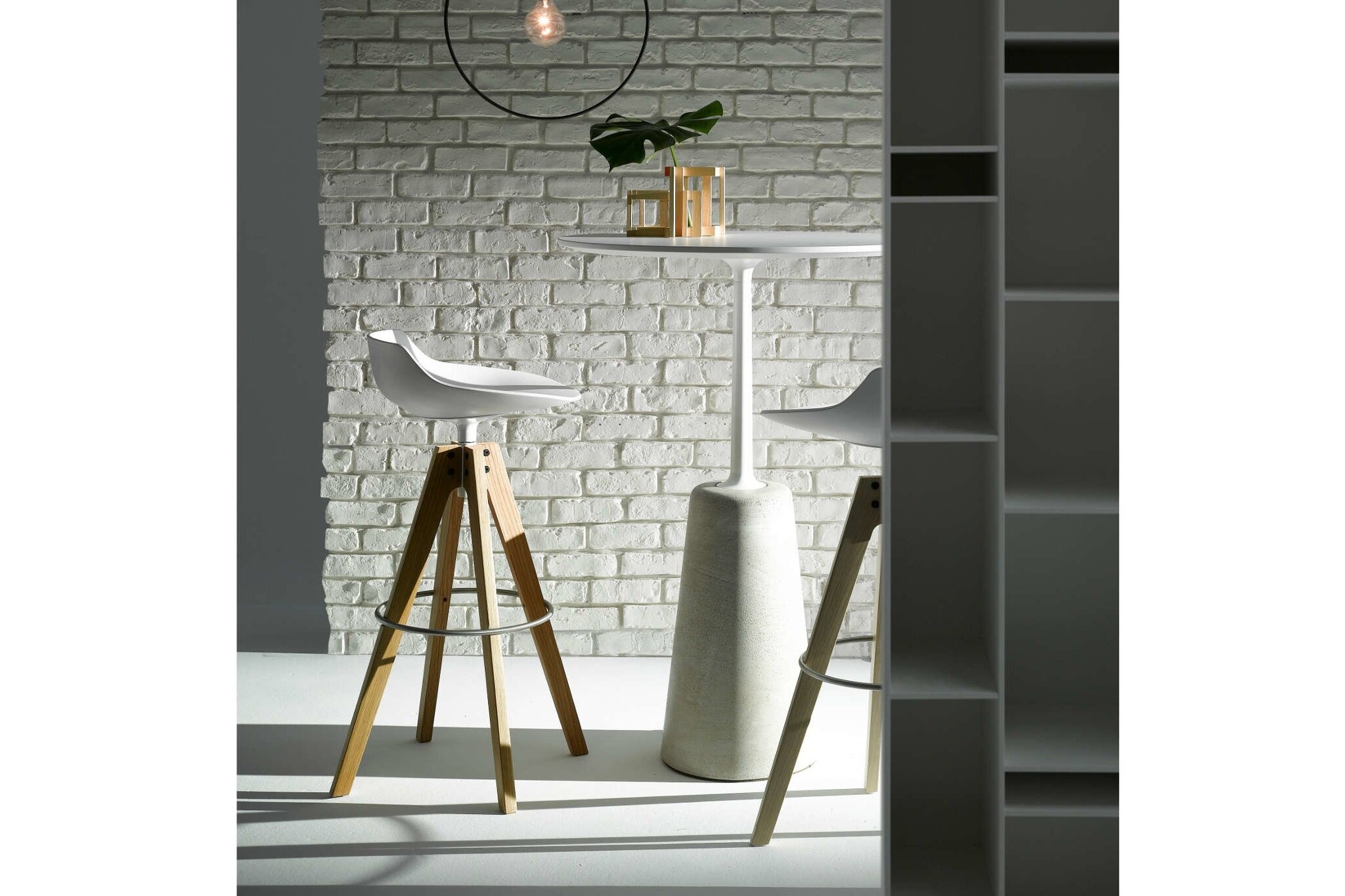 Slee basis in staaldraad, geschilderd mat wit, mat grafiet of verchroomd. Zithoogten beschikbaar in: 44, 65 en 78 cm.