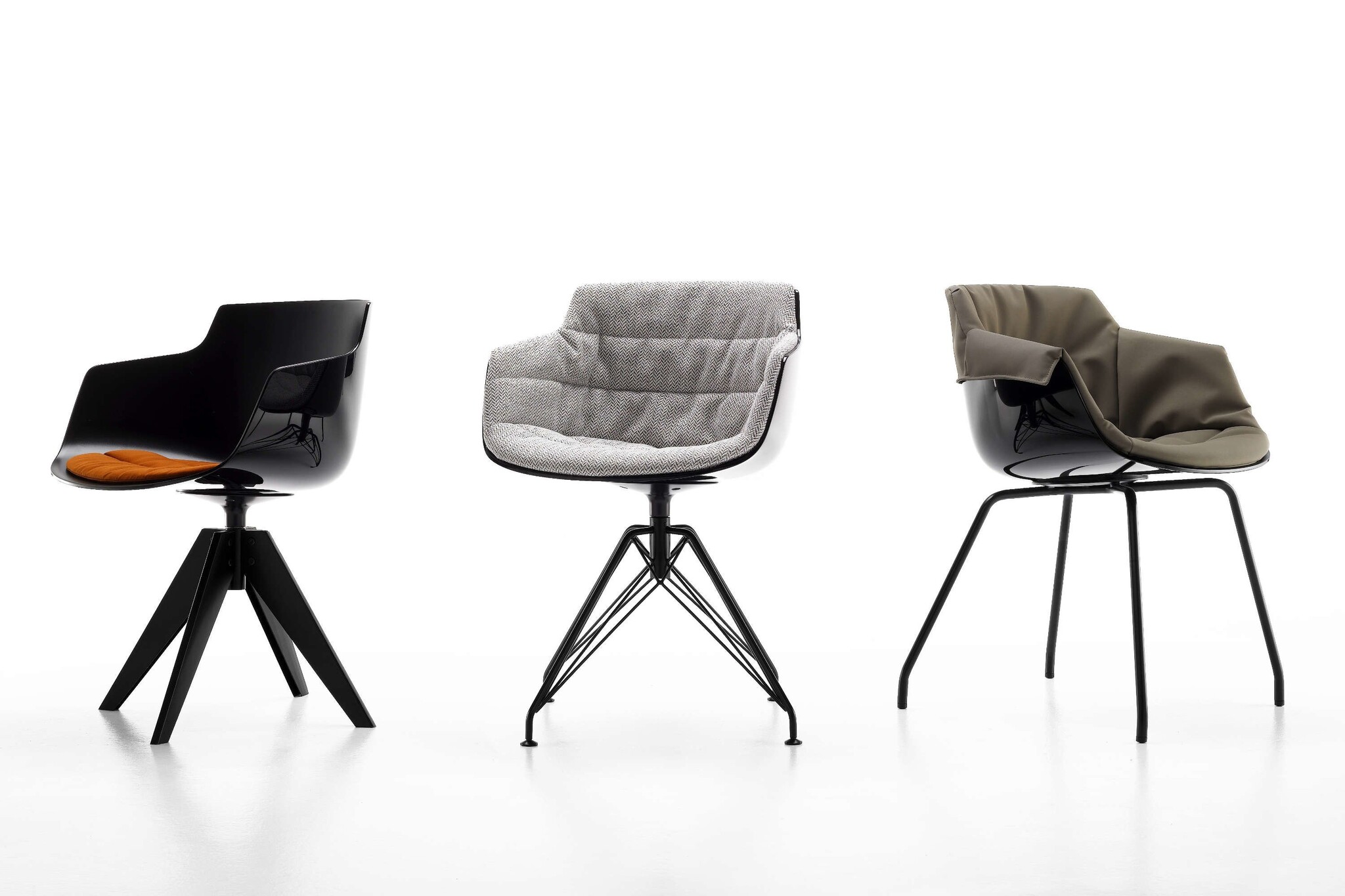 Mdf Italia Flow Slim Armchair, een nieuwe stoel voor de Flow collectie. De zitkuip kan in het wit, zwart of bekleed worden met een stof uit de MDF stoffencollectie. Daarnaast zijn er die onderstel mogelijkheden; een centrale kolompoot, 4-poots in eikenhout en de nieuwe VN 4-poten ook in het eikenhout.