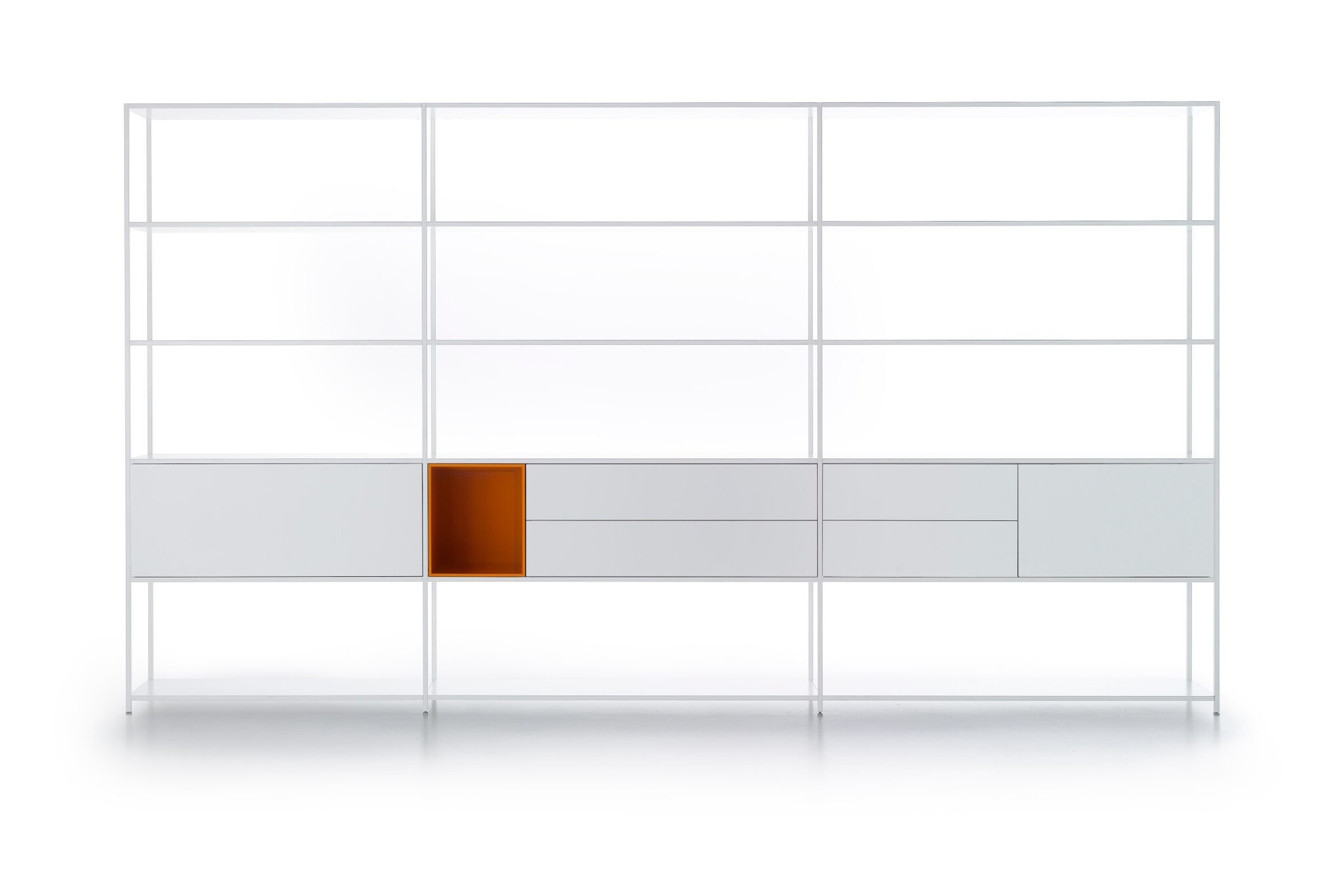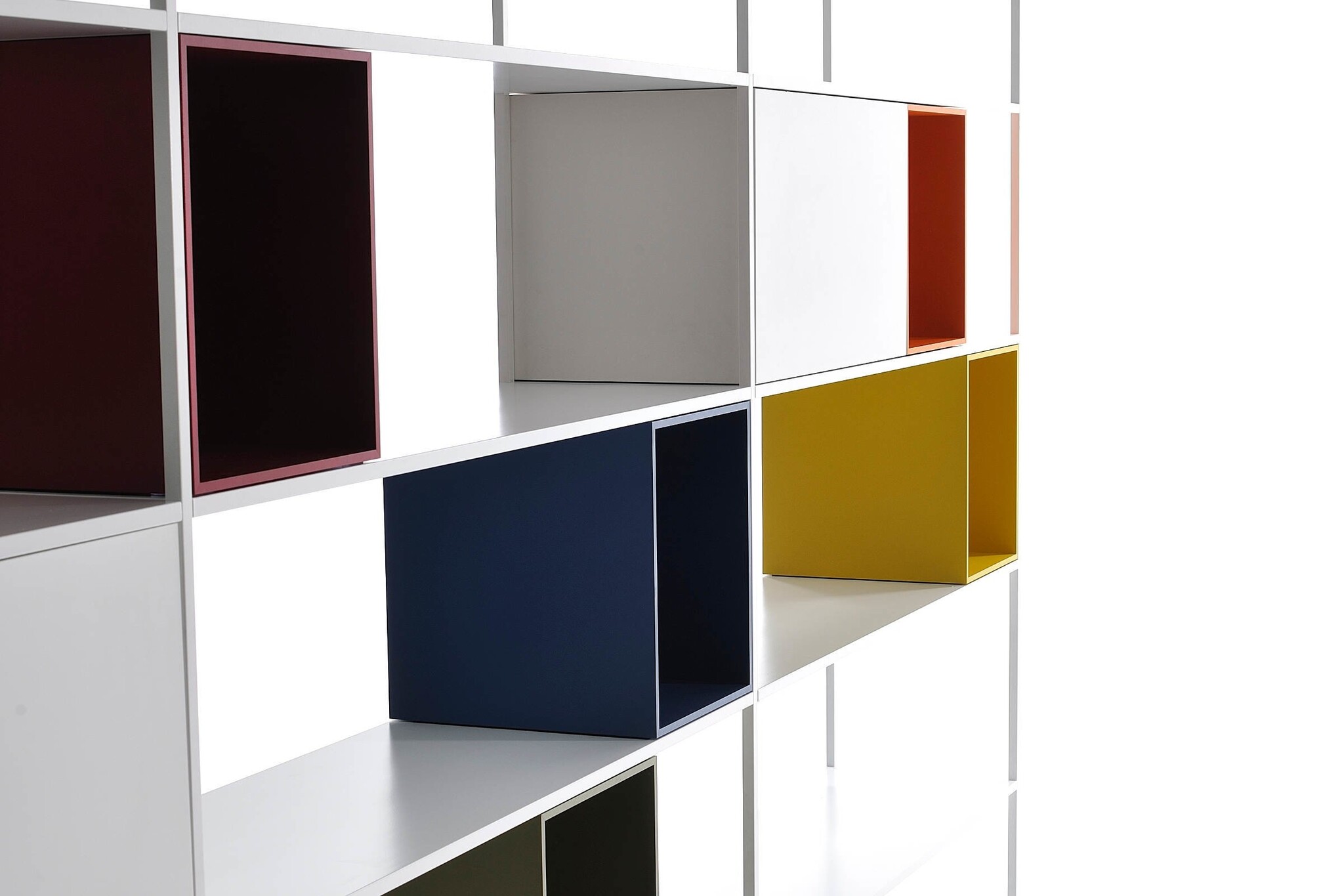 De Mdf Italia Minima 3.0 kasten bestaat uit drie elementen die een kantoorkast samenstelt: een plank, het frame, en een kastdeur. De keuze is aan u om hier een lage kast, hoge kast, staande kast, hangende kast, open kast of kast met deurtjes van te maken. Kenmerken Mdf Italia Minima 3.0De kast bestaat uit verschillende standaard elementen, zoals open kastjes, ladekasten, boekenkasten in verschillende breedtes en hoogtes die vrijstaand zijn of aan de muur opgehangen kunnen worden.