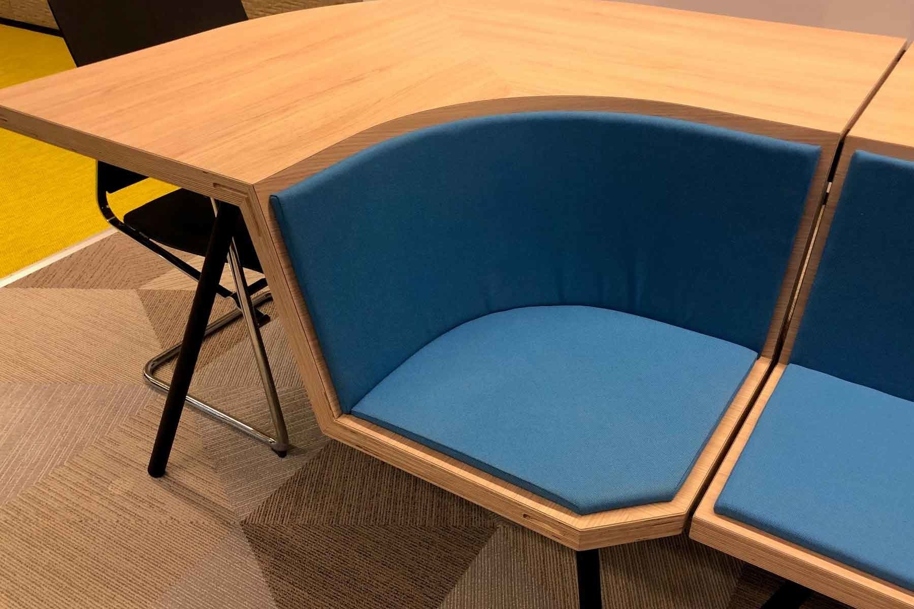 Met twee basisvormen, een hoekdeel en een recht deel, welke eenvoudig te koppelen zijn, kunt u vergaderopstellingen creëren die interactief vergaderen bevorderen en passief toehoren vrijwel onmogelijk maken.
