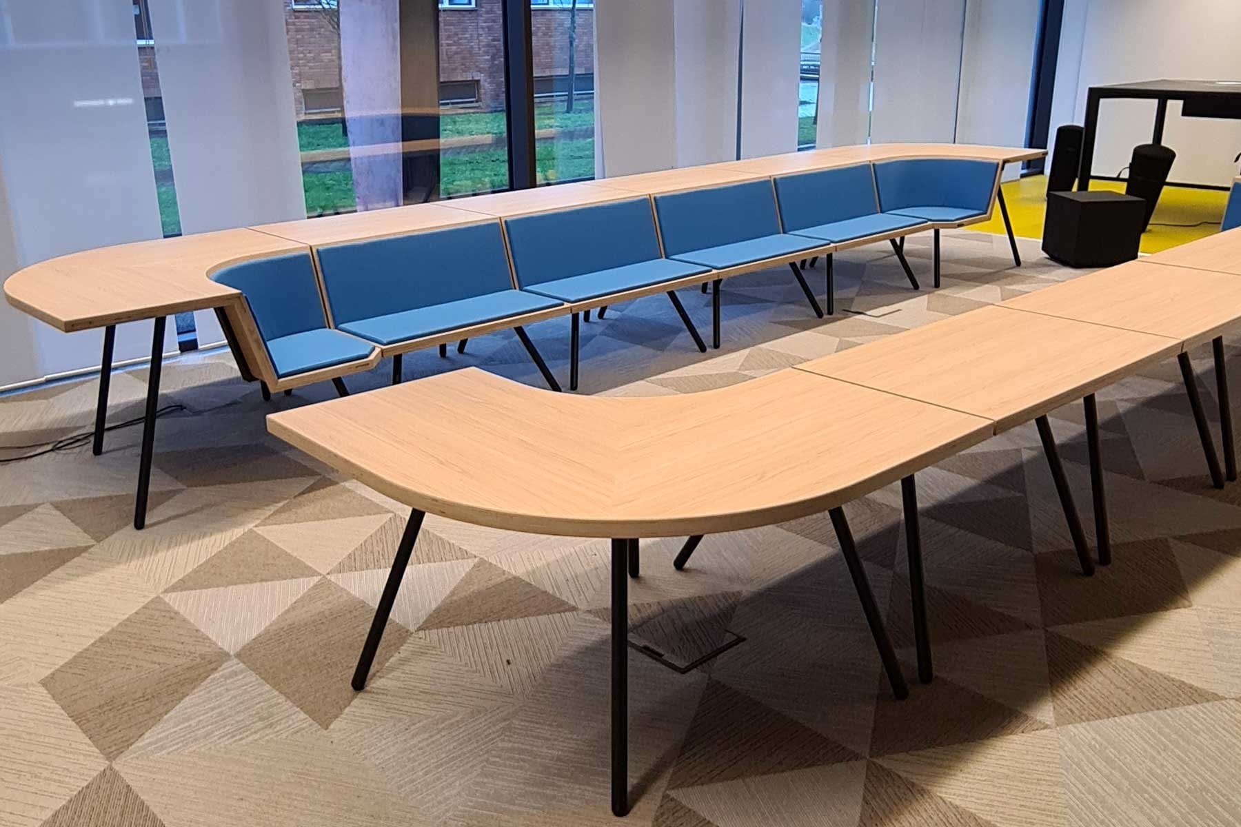 Met de MeetBench MeetBench is effectief vergaderen eenvoudiger dan ooit! Deze MeetBench MeetBench is ontworpen om organisaties te faciliteren bij een effectievere manier van vergaderen. De gebruikers zitten in een groep bij elkaar om zo te brainstormen of van gedachten te wisselen. Zo biedt vergaderen op deze, andere, manier meer dynamiek en plezier, verhoogde efficiency voor de organisatie en een verbeterd welzijn voor de medewerker. Uitvoering van de MeetBench MeetBench