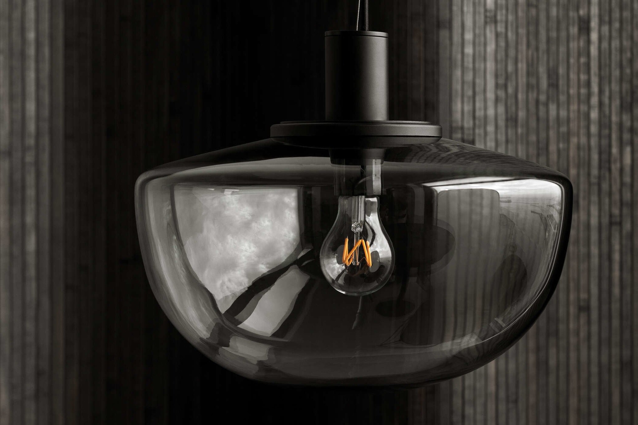De Menu Bank Pendant is een halfronde plafondhanglamp gemaakt van mondgeblazen glas in opaal of smoke (doorzichtig glas met een zwarte tint) en zwart gepoedercoat aluminium beslag. De hanglamp wordt geleverd met een snoer van maar liefst 4 meter, zodat u deze lamp ook in hoge ruimtes kunt plaatsen. De Menu Bank Pendant zorgt voor sfeerverlichting en is ideaal toe te passen boven vergadertafels, eettafels in uw bedrijfsrestaurant of andere openbare ruimtes.