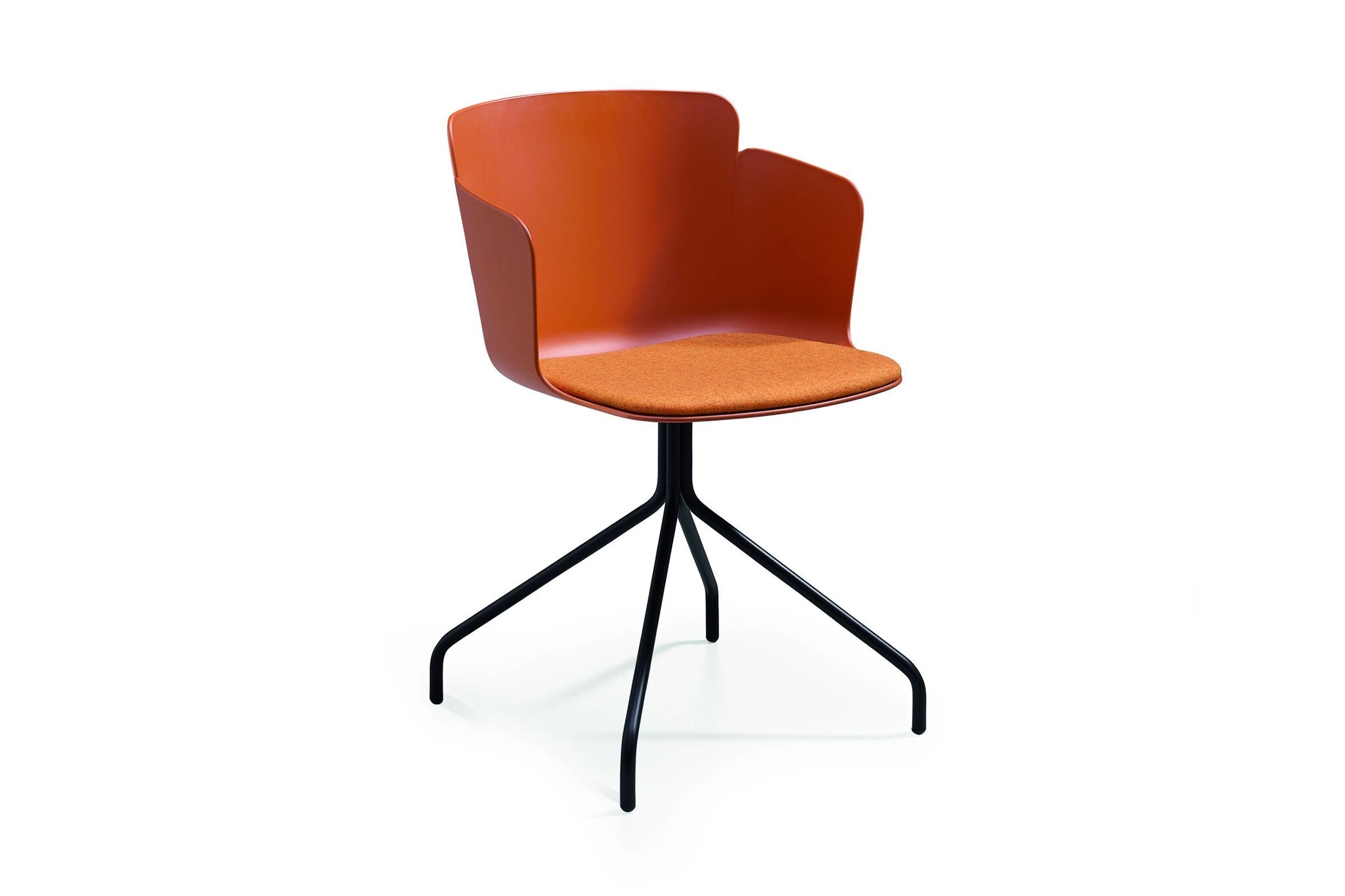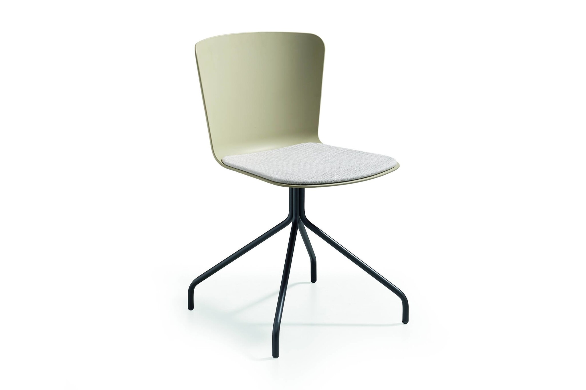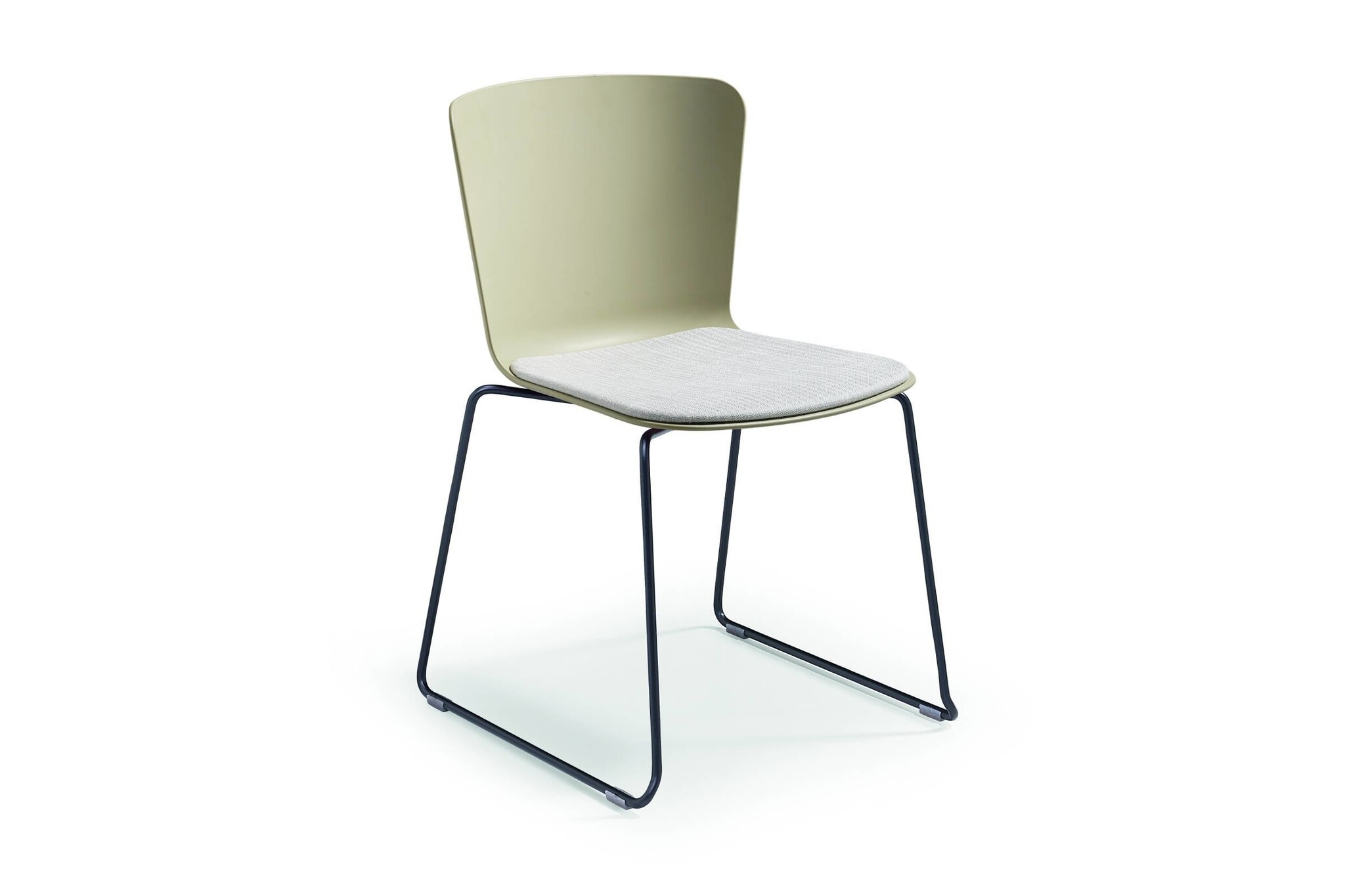 Optioneel is zitting van kunststof te voorzien van gestoffeerde inleg in stof of leer