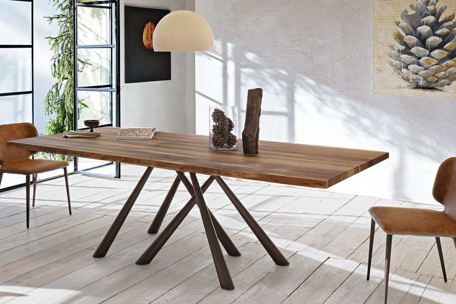 Massief houten blad verkrijgbaar voor de 200 x 106 cm en 250 x 106 cm versies.