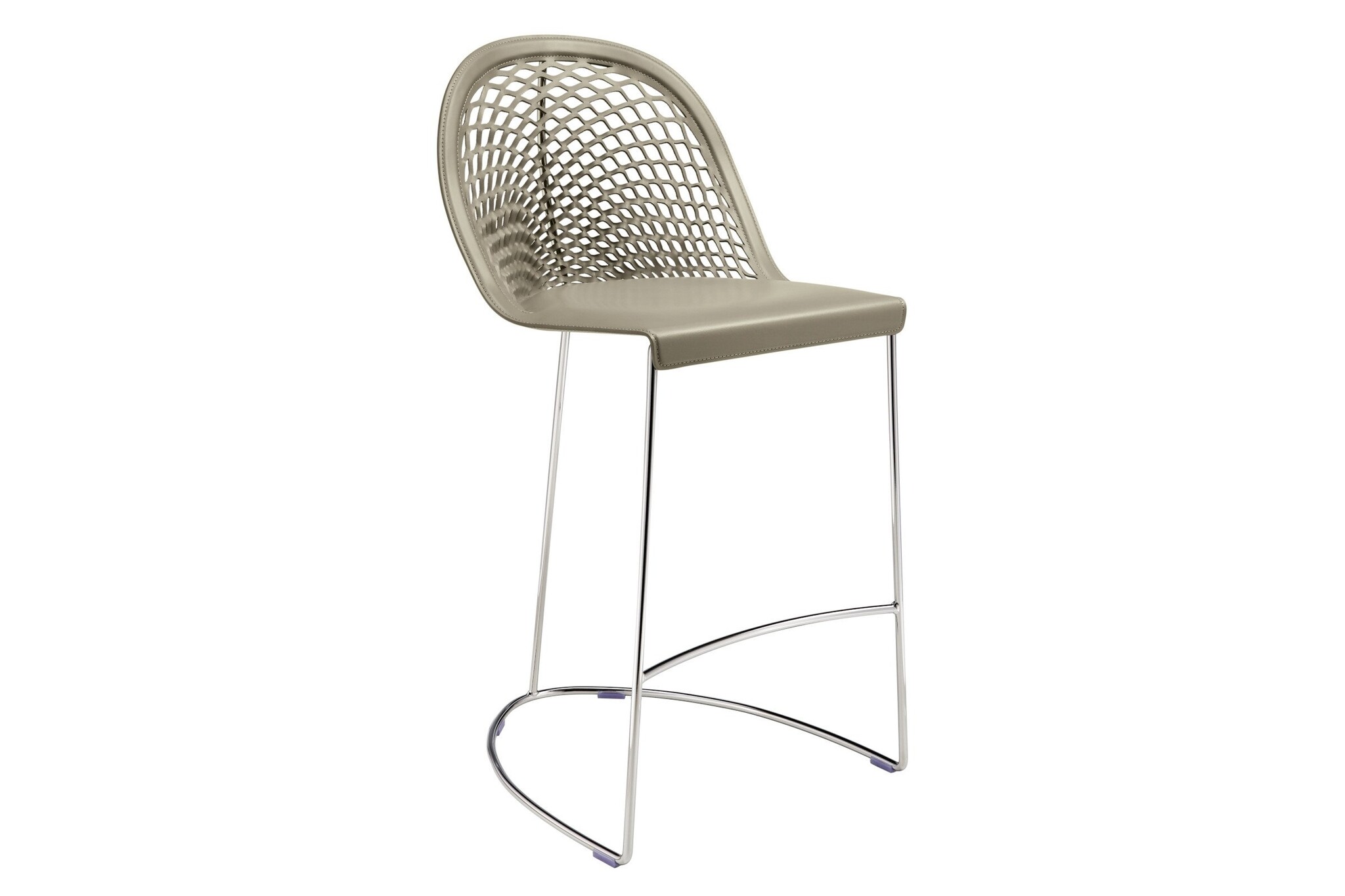Midj Guapa kruk is een mooi vormgegeven hoge kruk voor uw restaurant, bar, café of lunchruimte, een echt blikvanger voor het interieur. Maar ook in een werkomgeving op kantoor komt de luxe Guapa kruk mooi tot haar recht aan een hoge vergadertafel of aan een hoge tafel in de lunchruimte of in de lounge- of relaxruimte. De Guapa kruk dankt haar opvallende uiterlijk door haar unieke zitting van tuigleder met een luchtig rasterpatroon als ware het een gevlochten net, in combinatie met het ranke draadframe onderstel. De naam van de Guapa kruk is afgeleid uit het Spaans en betekend letterlijk vertaald “mooie vrouw”. De ontwerpers Beatriz Sempere en Franco Poli hebben met deze collectie krukken een ode willen neerzetten aan de uiterlijke schoonheid en vormen van de vrouw, met sierlijke en elegante contouren.
