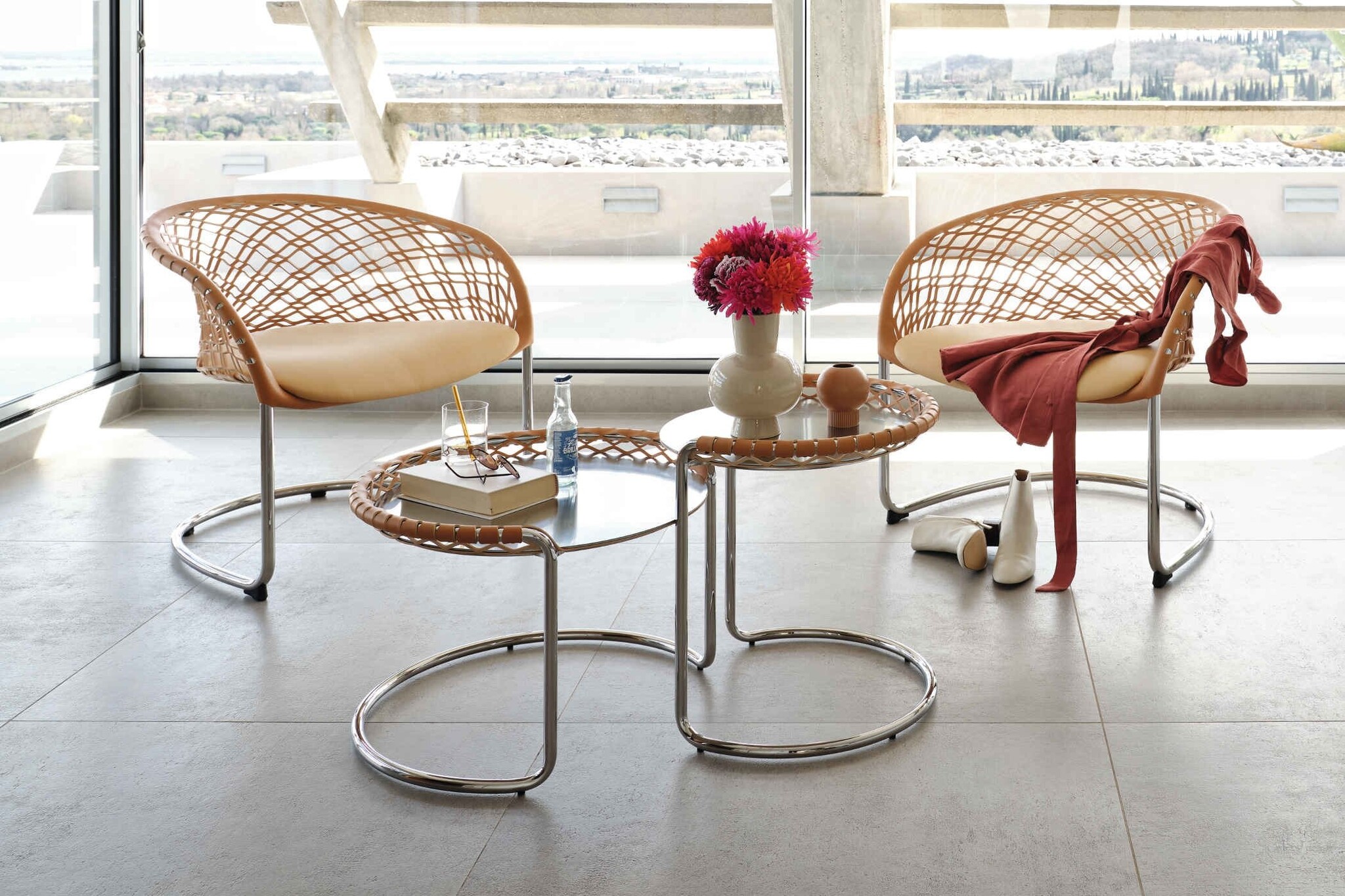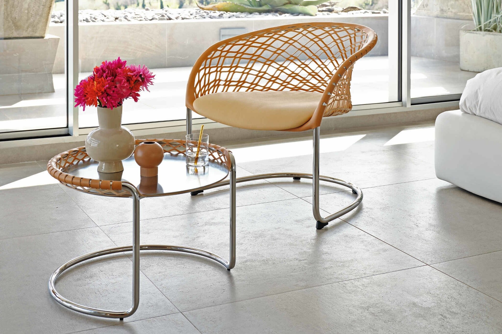 Draaibare loungefauteuil met onderstel van staal met verstelbare rugleuning