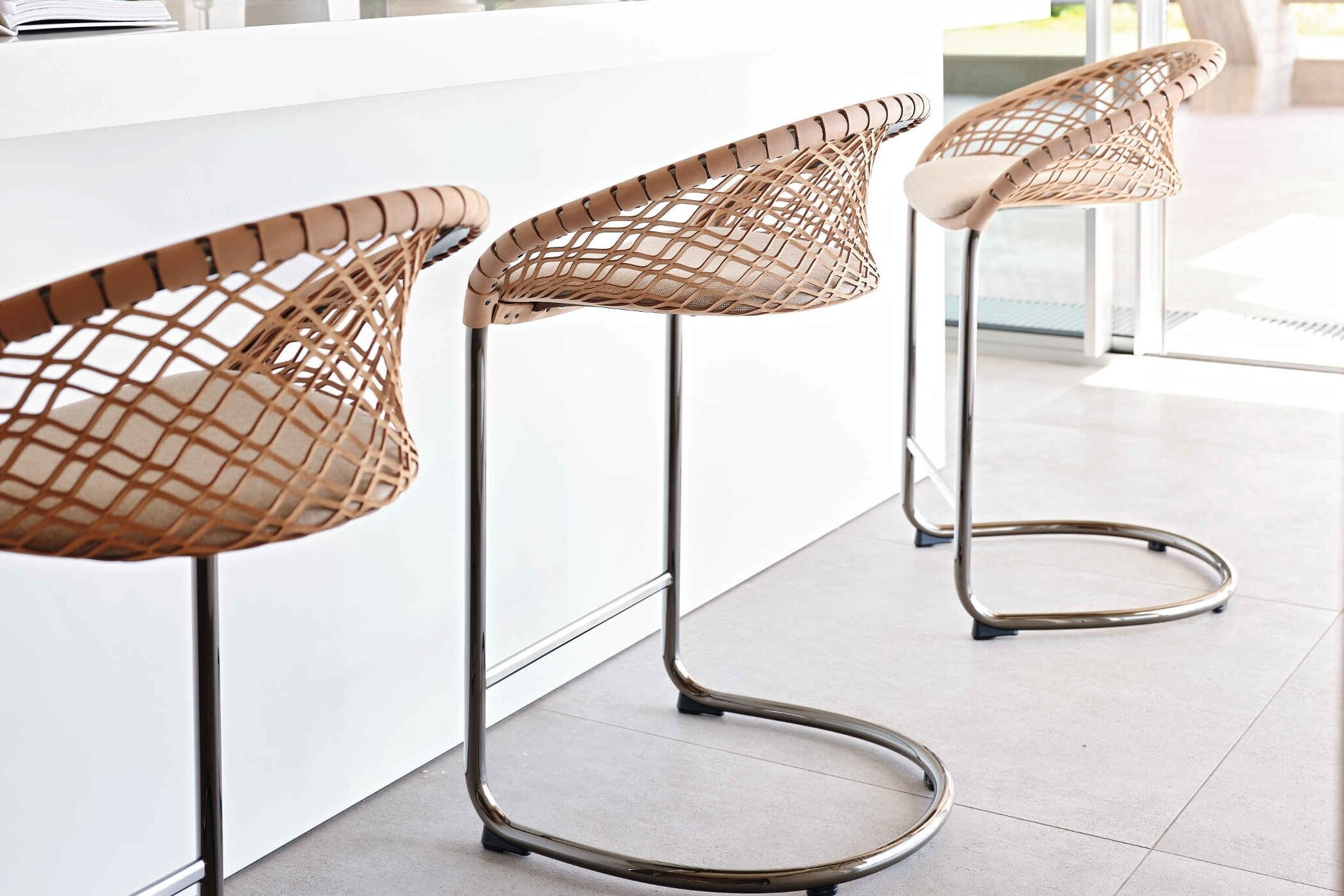 De Midj P47 kruk is leverbaar als in hoogte verstelbare kruk op kolom met voetensteun of als kruk met een slede-onderstel en zithoogtes van 65 of 75 cm. De rugleuning is van leer. Deze krukken zijn mooi met elkaar te combineren doordat ze dezelfde uitstraling hebben. Zo passen ze goed in de horeca. De in hoogte verstelbare Midj P47 kruk is goed toe te passen in vergaderruimtes met hoge vergadertafels.