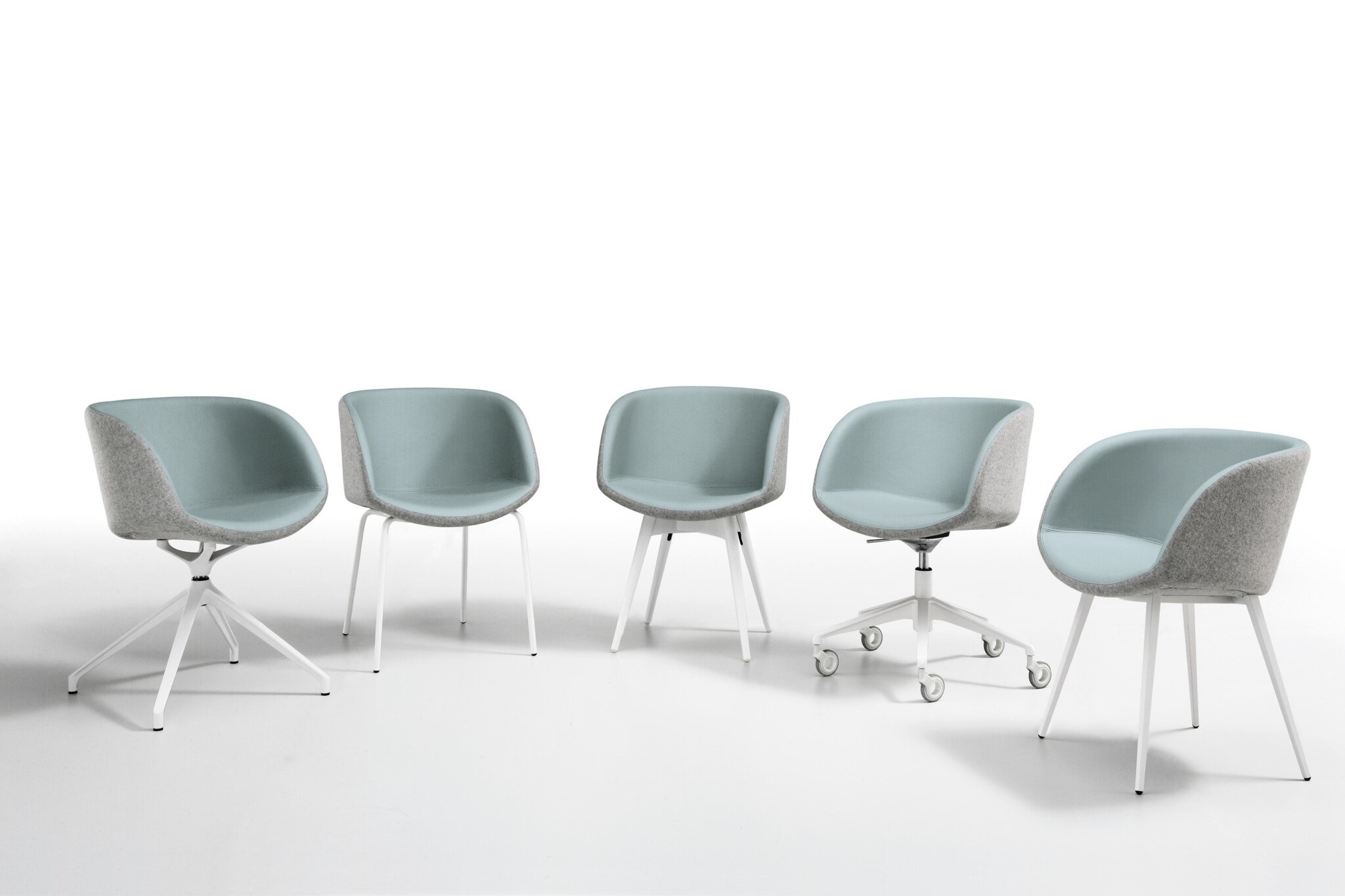 Sonny PB D, lage armleuningen, verrijdbaar, in hoogte verstelbaar met stervoet onderstel in gelakt staal