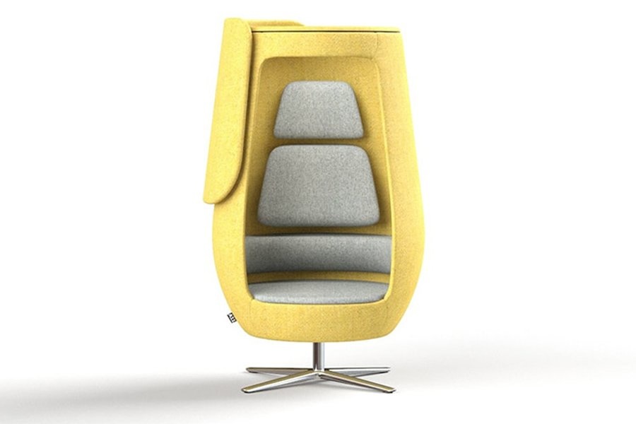 Loungefauteuil met akoestische eigenschappen in de vorm van een cocon