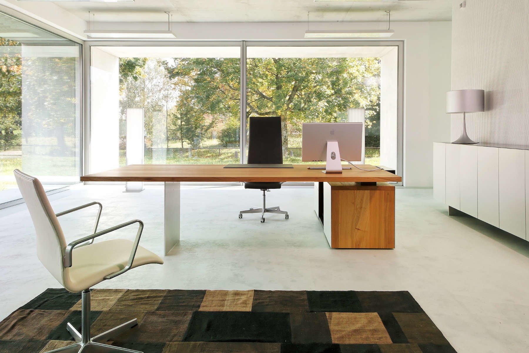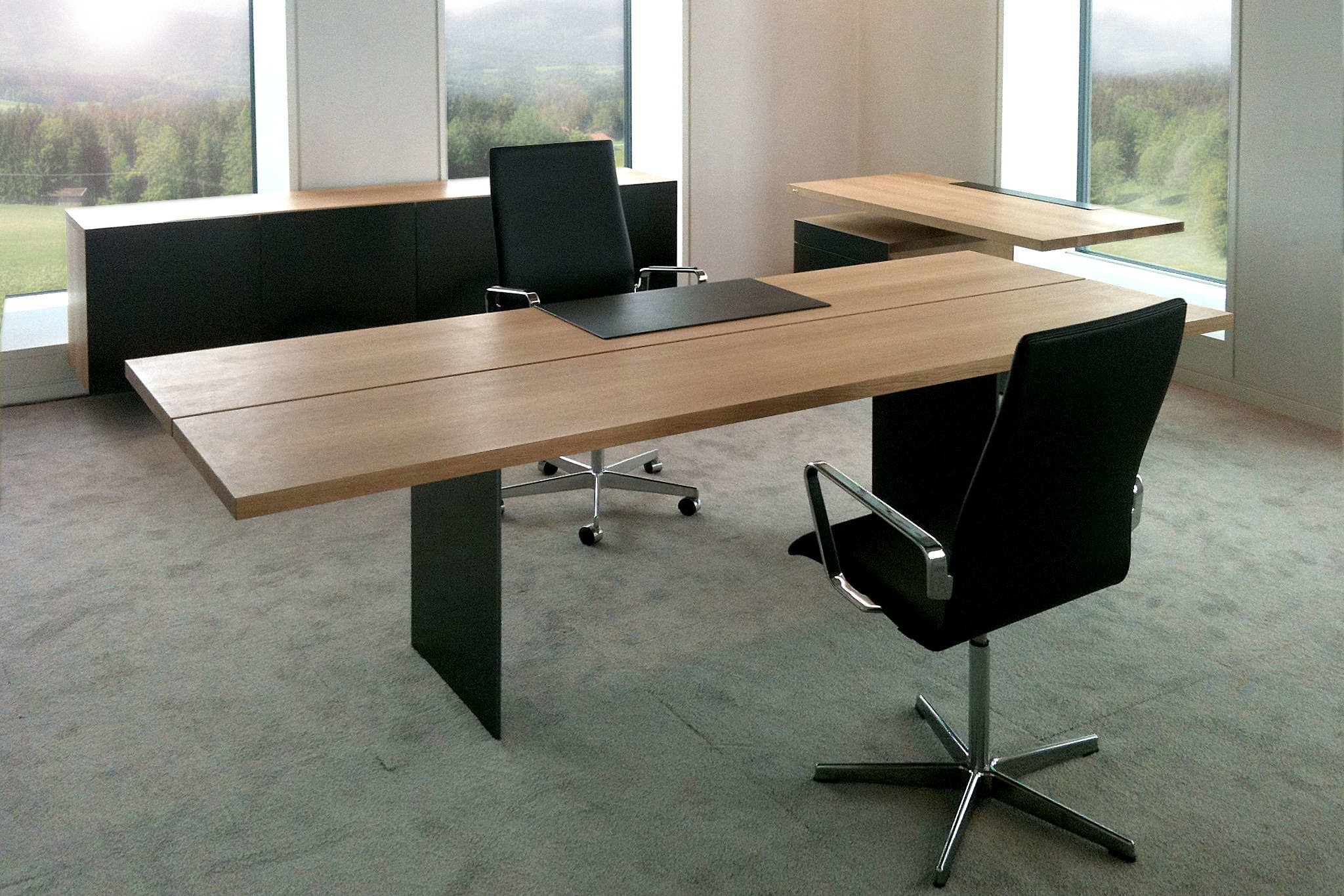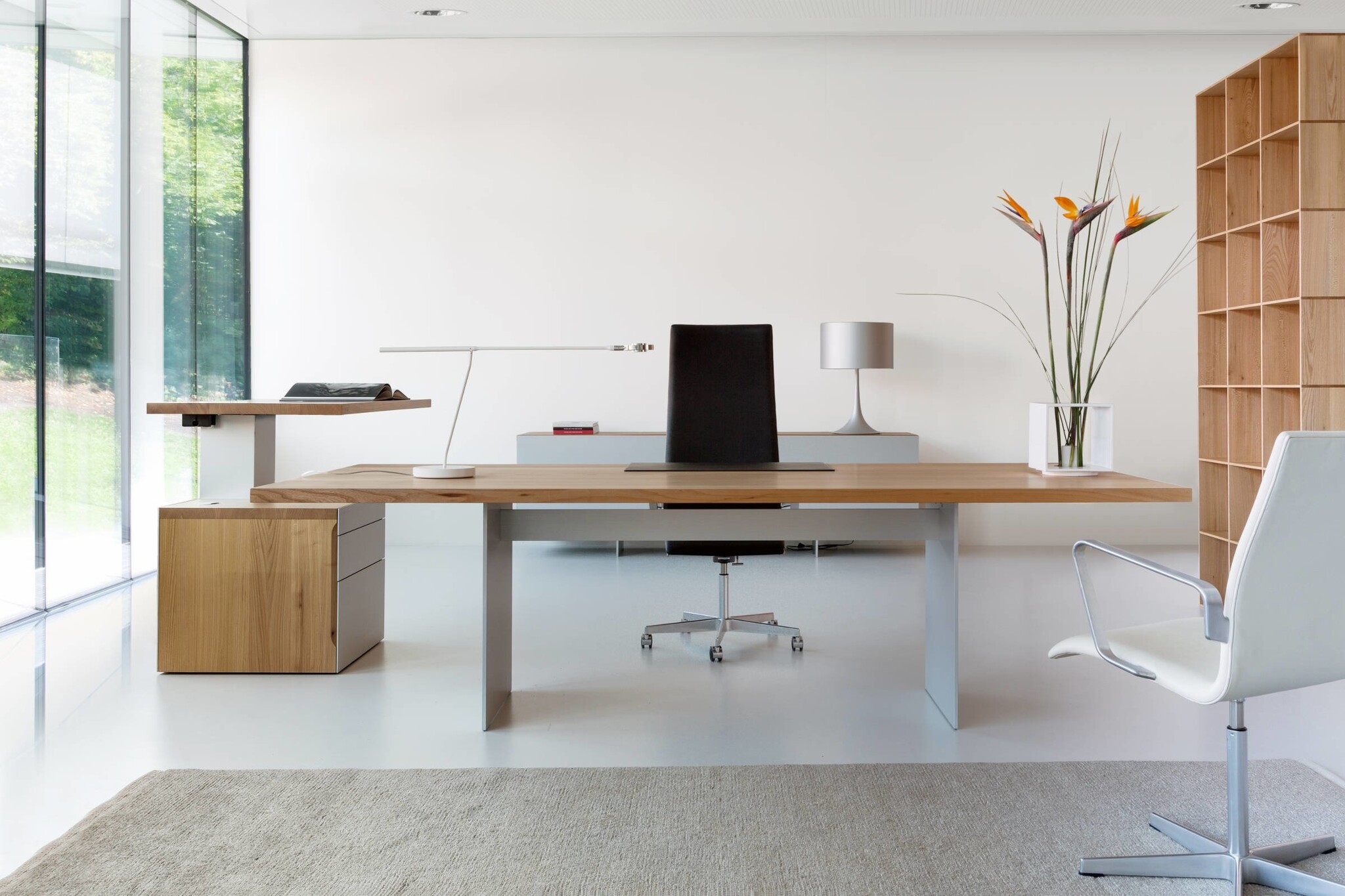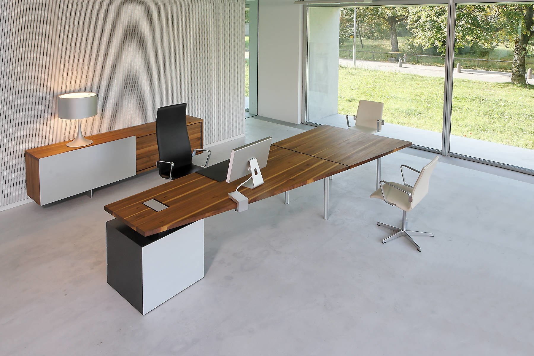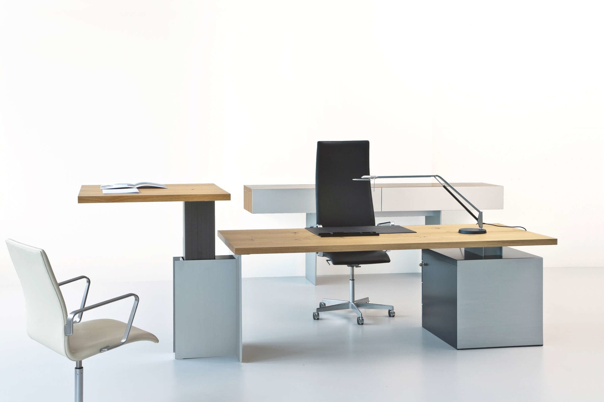 Diverse vormen bureaus zijn te combineren met ladeblokken, sideboards en kasten. Zowel in een historische als in een moderne setting is Tix office geheel op haar plaats.