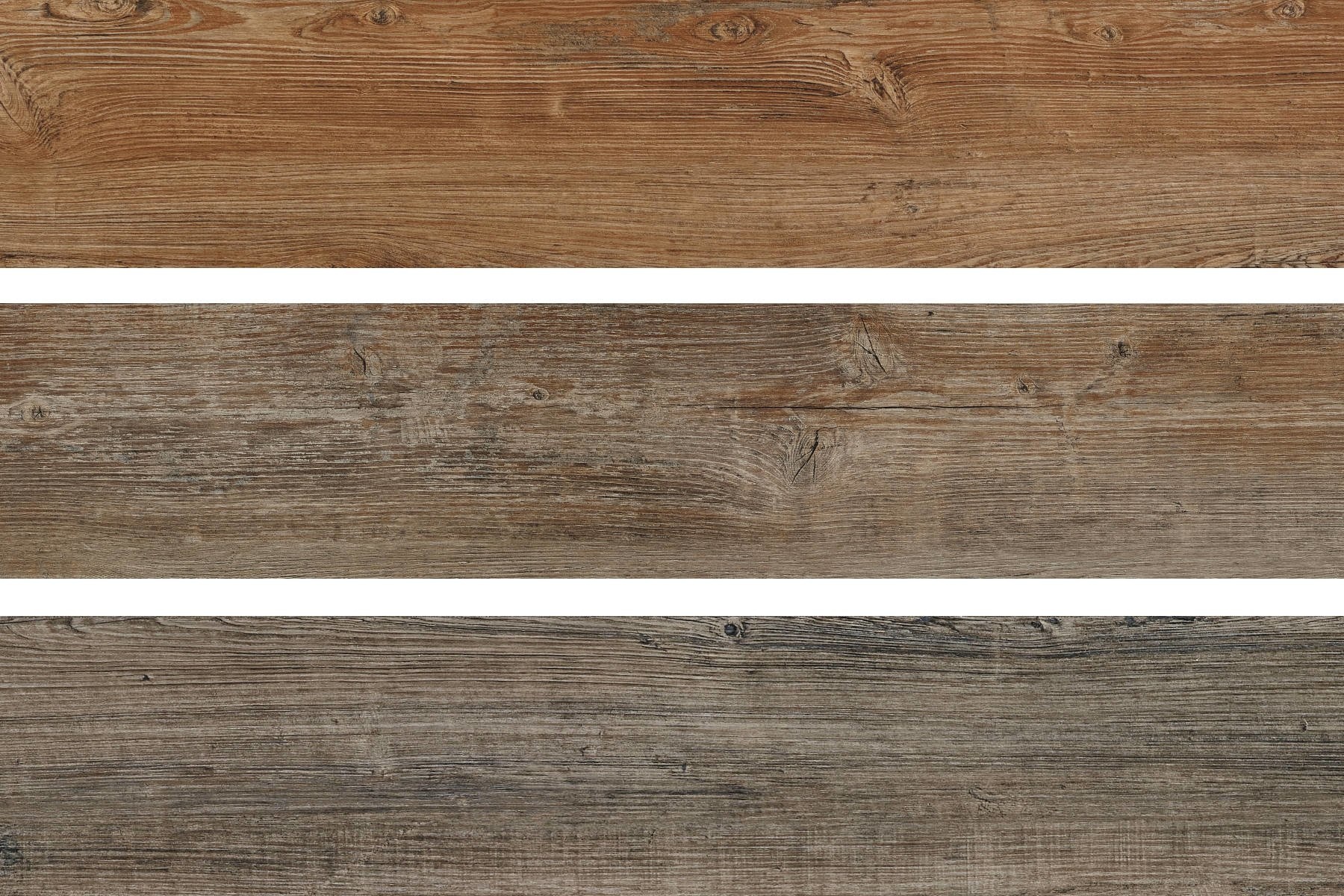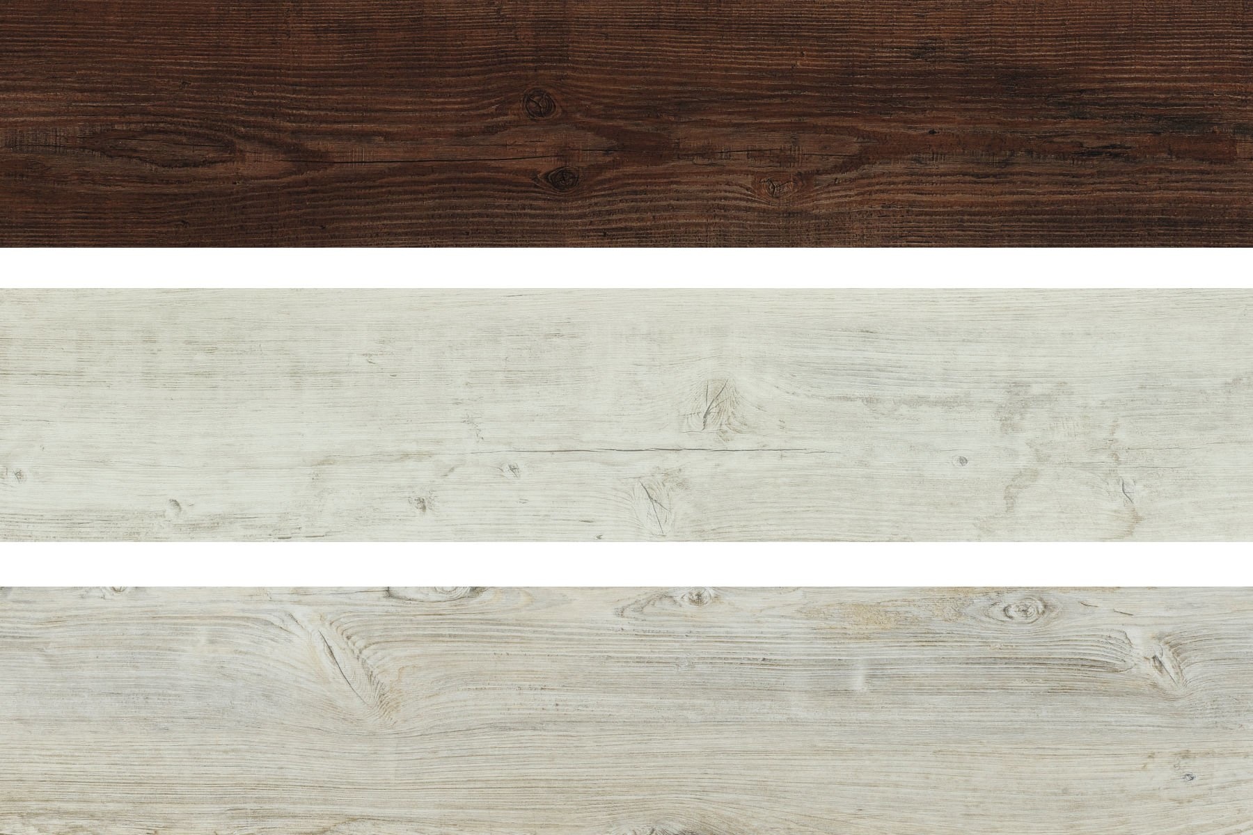 Leverbaar in 6 perfect geïmiteerde dennenhout kleuren met de kenmerkende uiterlijke eigenschappen, ruw en fijn generfd. De houtstructuur is duidelijk zichtbaar en voelbaar door toepassing van een speciale stanstechniek, "Embossed in Register".