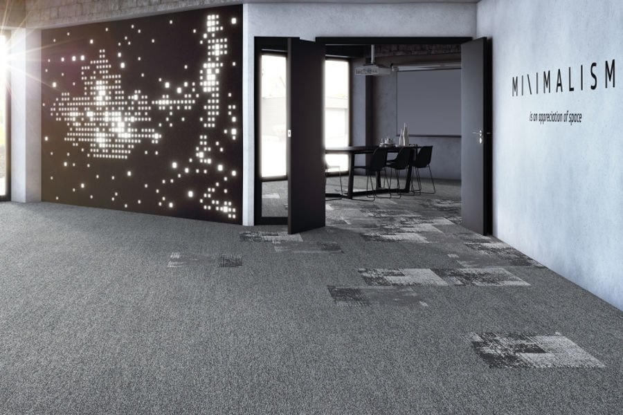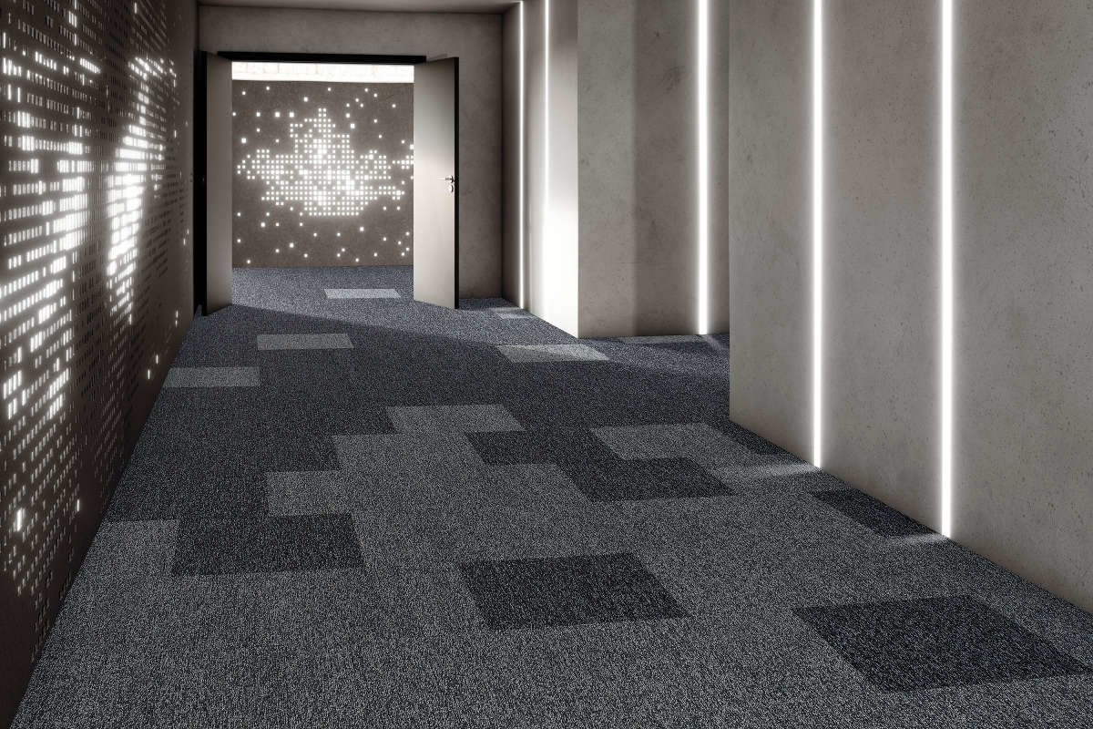 De kleurencollectie omvat 9 tijdloze kleuren die zich makkelijk aanpassen aan elke stijl en inrichting van kantoor, openbare ruimte of projectomgeving. De tapijttegels hebben een glanseffect met pixel-structuur. Deze twee factoren geven de collectie een industrieel en minimalistisch design karakter.