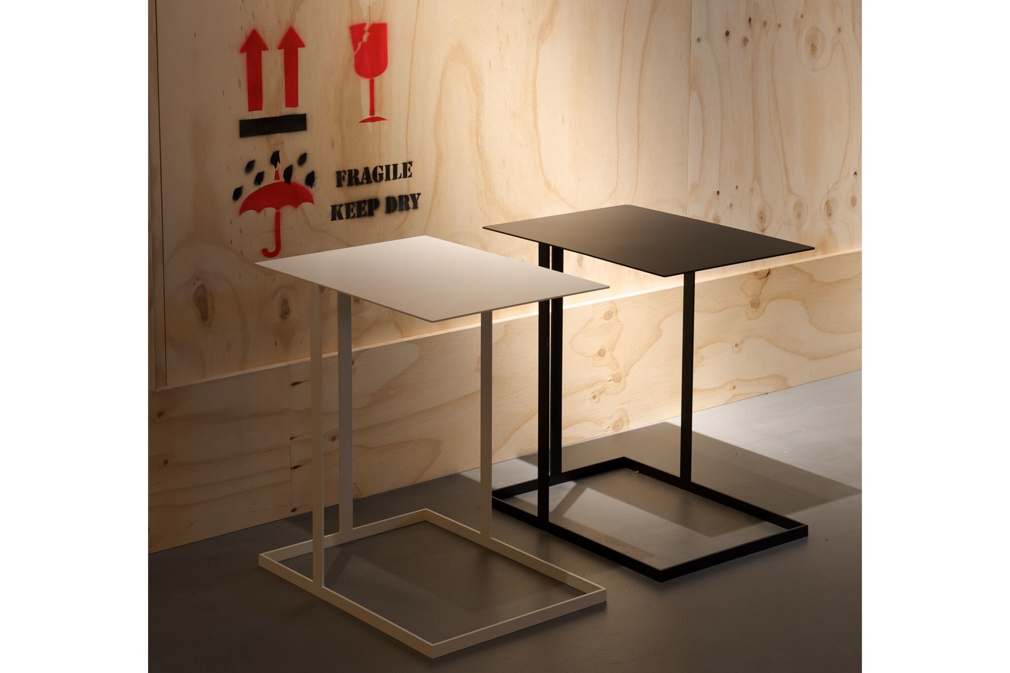 De bijzettafel is geheel gemaakt van staalplaat, deze is mat gepoedercoat en te leveren in de afwerkingen wit en zwart.