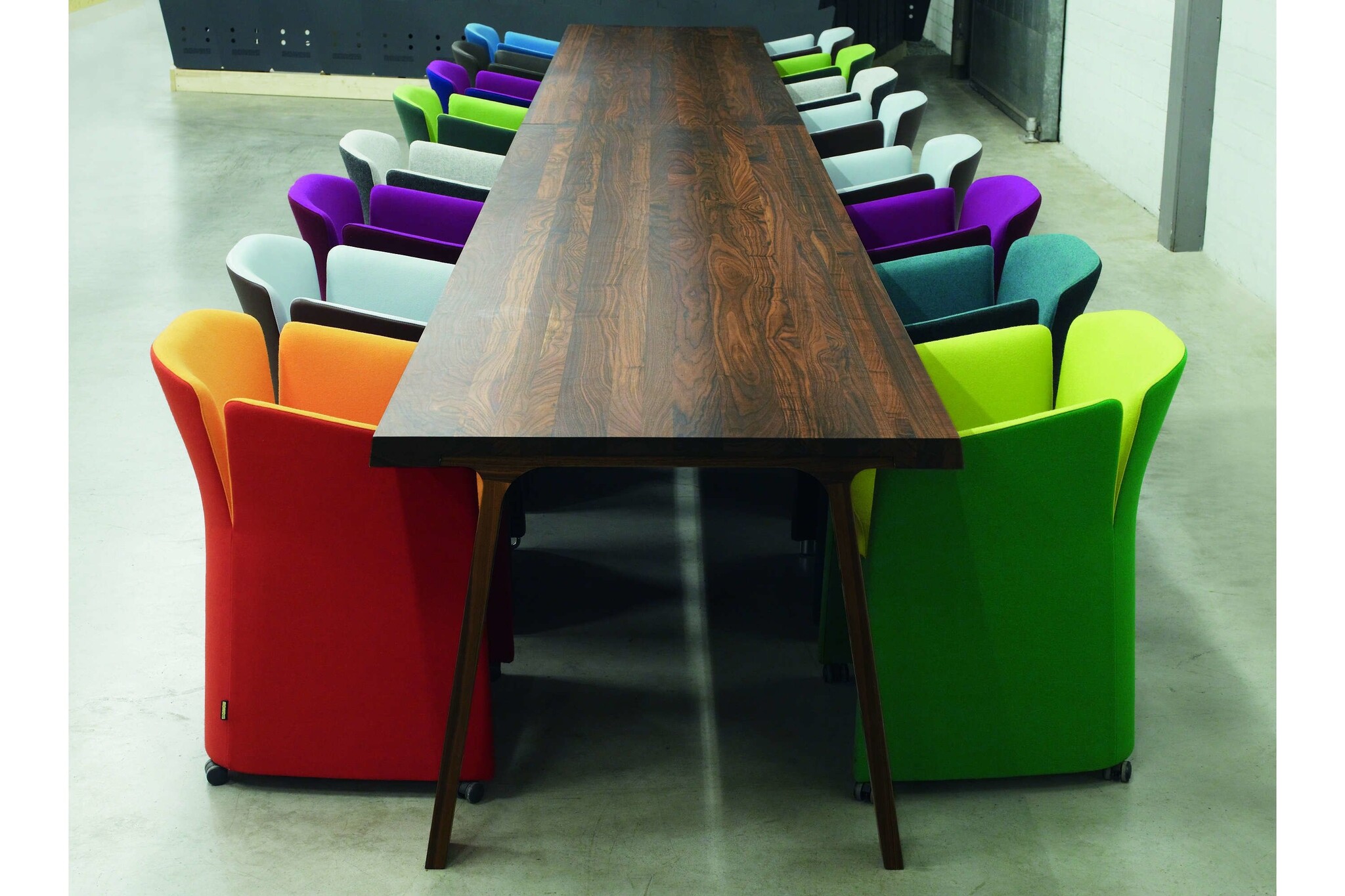 Montis Doble is een vergadertafel / eetkamertafel waarbij een massief houten blad gedragen wordt door een paar lichtvoetige massief houten pootstellen in een parallel stap. Deze Montis Doble tafel is geschikt voor in een restaurant, kantine of uiteraard als vergadertafel voor op kantoor. Maar omdat er meerdere formaten van deze tafel beschikbaar zijn, kan deze tafel ook in een hoge uitvoering geleverd worden. Deze is geschikt voor in een bar, café of als kantinetafel. Tint Office kan u helpen bij het maken van de juiste keuze(s) voor de meubelen in uw ruimte. Kenmerken van de Montis Doble tafel