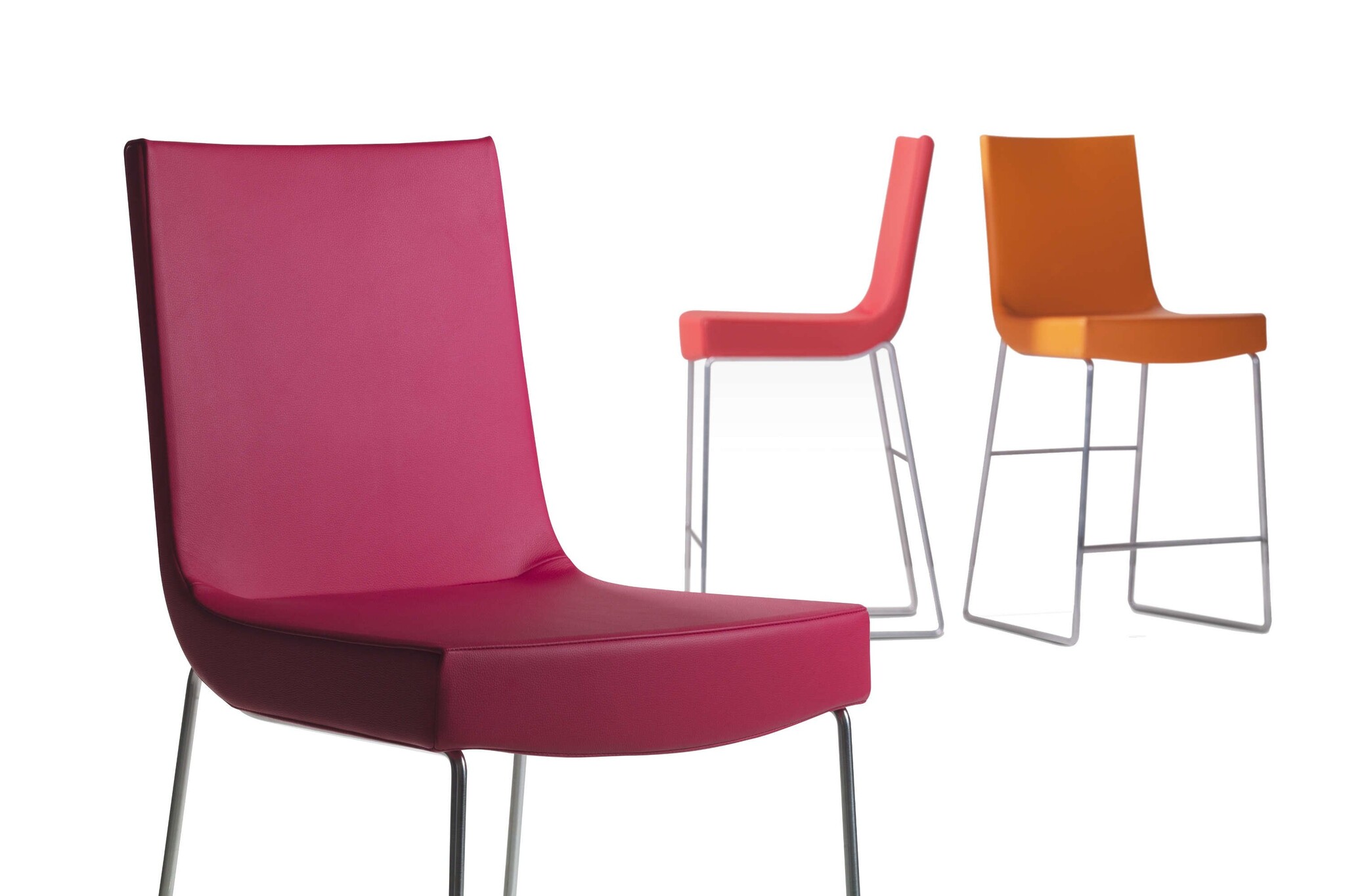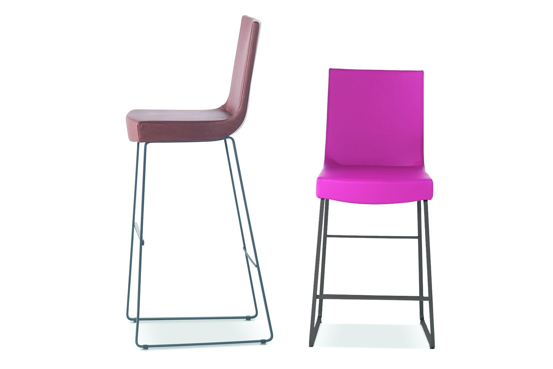 Het onderstel van Jim kruk is verkrijgbaar met 4 subtiele smalle poten of met een gesloten slede onderstel. De barstoelen daarentegen zijn alleen in de slede onderstel verkrijgbaar.