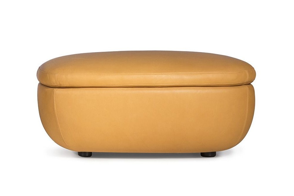 Het frame van de poef is gemaakt van hout, de kussens zijn van foam.
