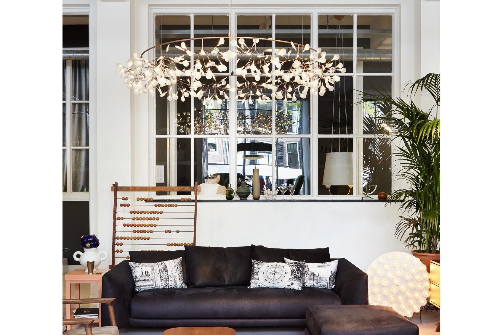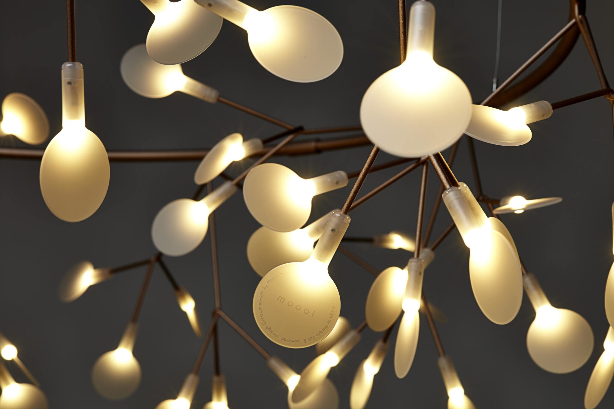 Moooi Heracleum plafondlamp met speels effect. Gemaakt van nikkel en koper. Ontworpen door: Bertjan Pot.