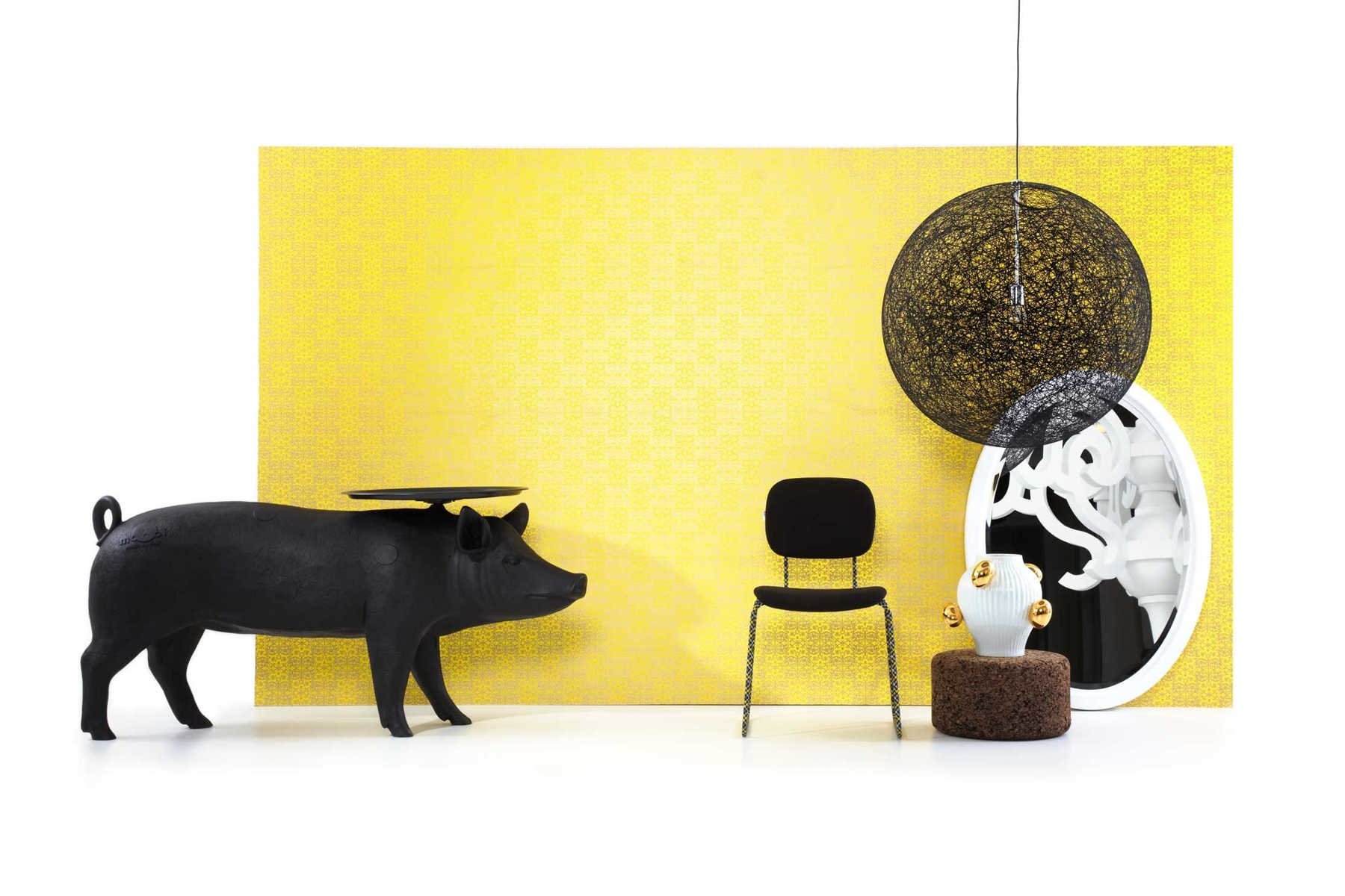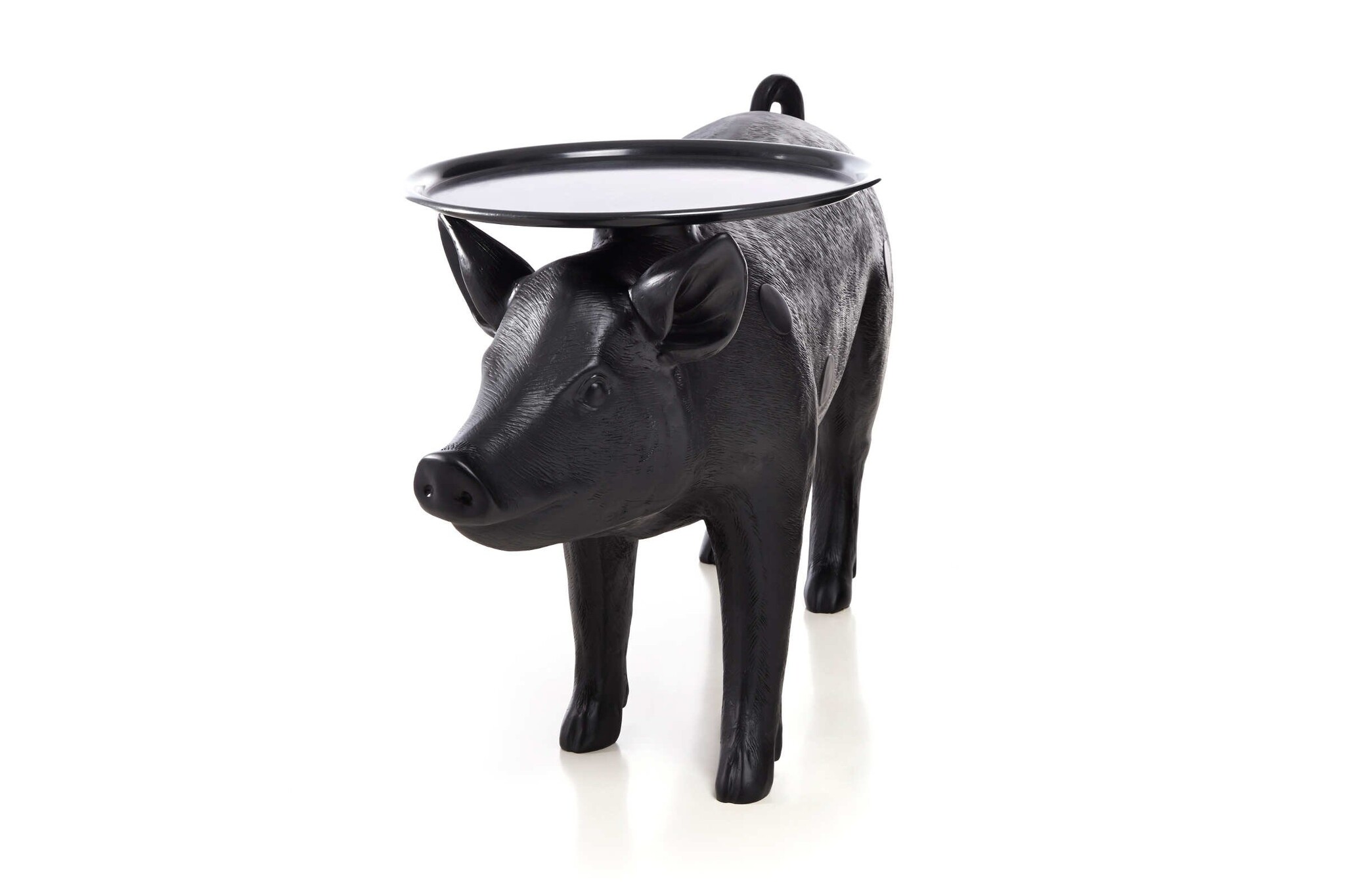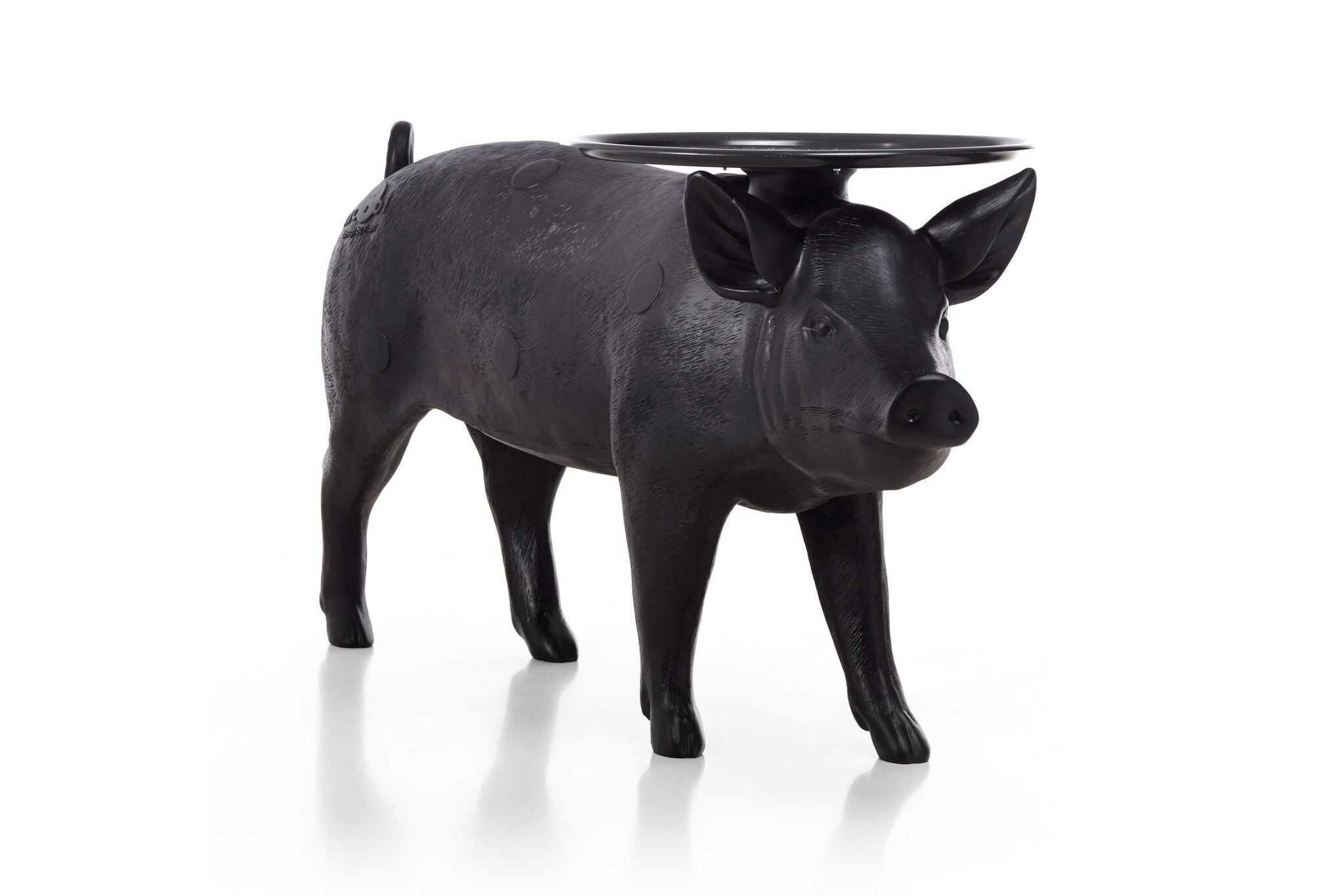 Iets wat u waarschijnlijk niet snel tegen zal komen: Moooi Pig tafel. Deze tafel is ontworpen door Front Design en heeft de afmetingen van een levensgroot varken. Door het tafelblad dat gemonteerd is bij de nek van het varken, kunt u dit als handige bijzettafel of koffietafel gebruiken. Het ziet er niet alleen leuk uit (als een mooi beeld), maar het heeft ook nog een praktische functie. Tevens kan deze tafel goed gecombineerd worden met andere ‘dieren’ meubelen uit de Moooi collectie die in dezelfde stijl zijn gemaakt, zoals de Moooi Horse en de Moooi Rabbit. Het is een echte aanvulling op uw projectruimte. De Moooi Pig wekt verbazing en creëert een lach op het gezicht van iedereen die uw ruimte binnengaat. Door dit vrolijke varken worden er gesprekken gestart en inspiraties opgedaan. Kenmerken van de Moooi Pig tafel