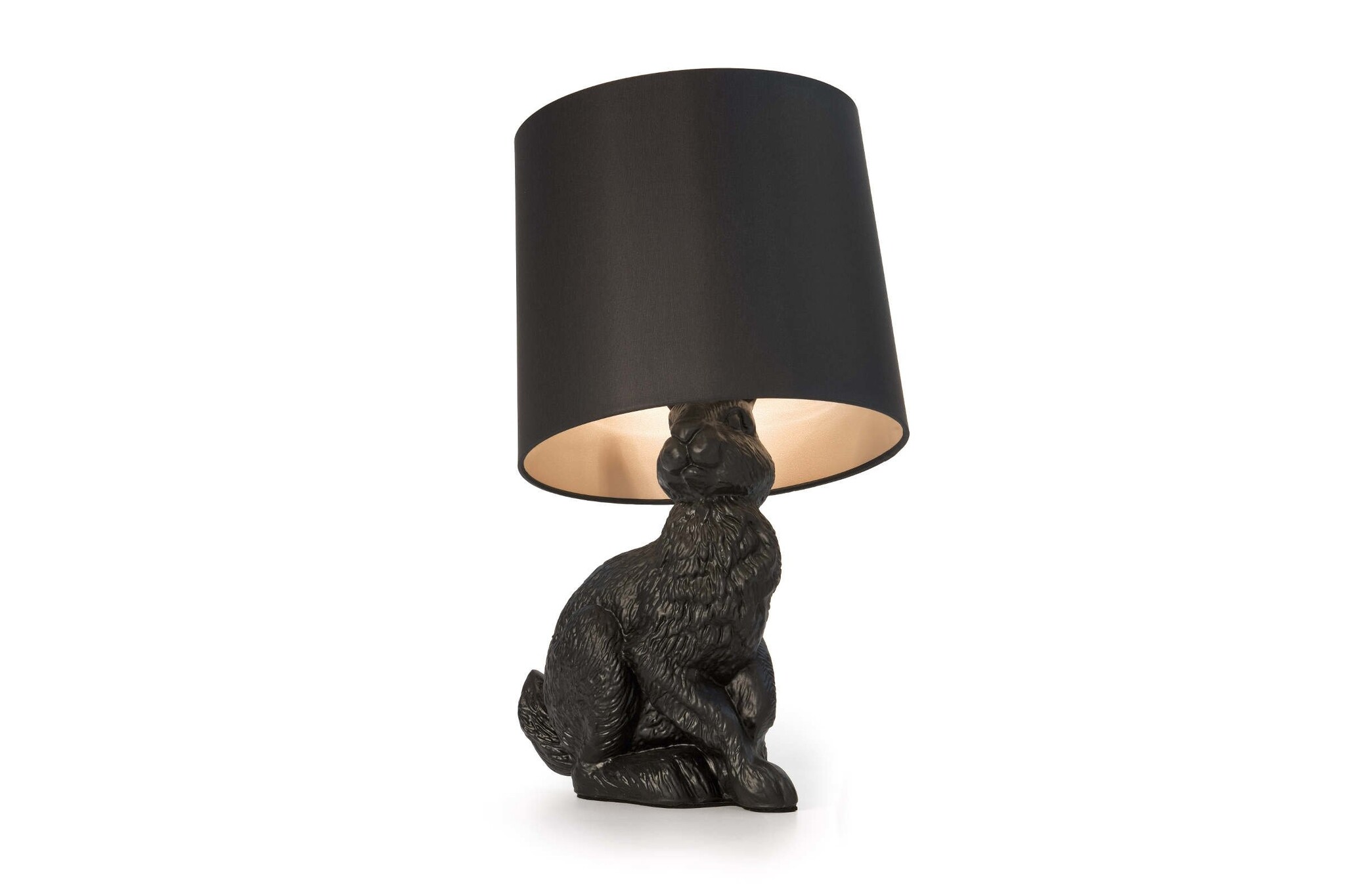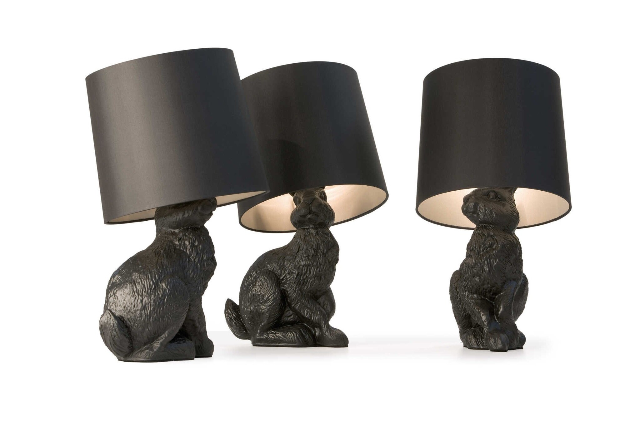 Een gedurfd ontwerp: Moooi Rabbit tafellamp. Dit ontwerp is bedacht door de Zweedse designers van Front Design. Het is een ontwerp wat zeker niet alledaags te noemen is. Het konijn is een waar beeld, met de lampenkap boven zijn oren is het ook nog eens praktisch. De lamp is op levensecht formaat gemaakt, waarbij alle kenmerken van een echt konijn ook naar voren komen, zoals de haren, staart en het neusje. Een uitdagende stijl die wellicht perfect in uw ruimte past. De Moooi Rabbit is echt iets unieks en zoals de designers zelf zeggen: ‘love it or hate it.’ Kenmerken van de Moooi Rabbit tafellamp