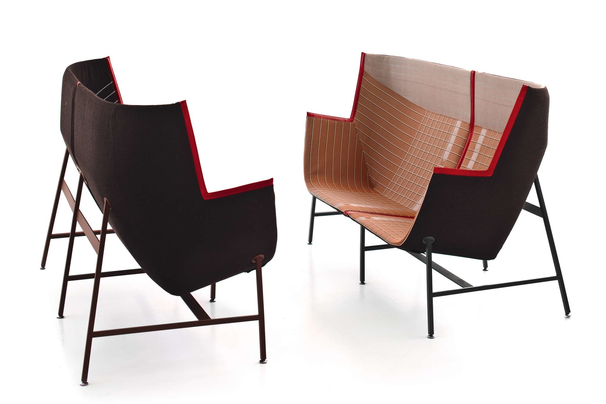 Moroso Planes bank, bij het ontwerp hebben Doshi en Levien zich laten inspireren door gevouwen ruitjes papier. Het resultaat is deze prachtige serie van fauteuils en banken. Het frame van staal draagt het polyurethaan schuim dat gestoffeerd kan worden.