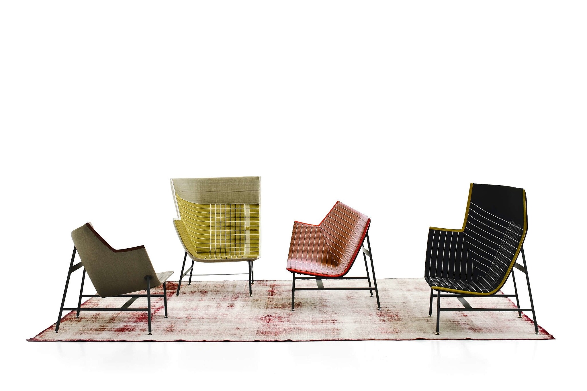 Moroso Paper Planes fauteuil, bij het ontwerp hebben Doshi en Levien zich laten inspireren door gevouwen ruitjes papier en maakte twee soorten fauteuils. Kenmerken Mororso Paper Planes fauteuil