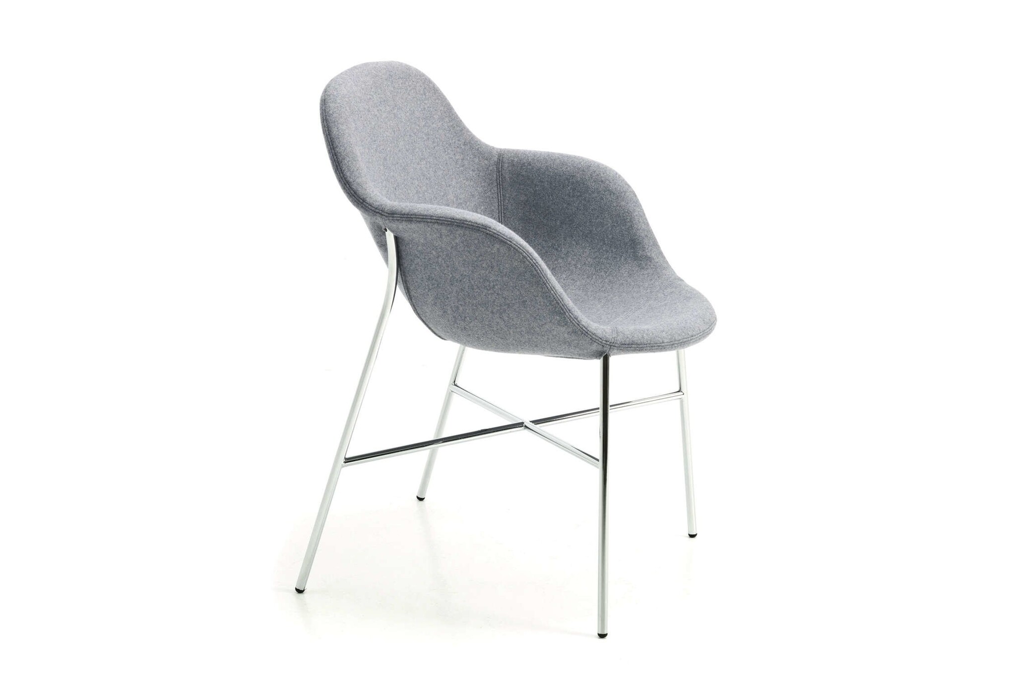 Moroso Tia Maria is een stoel die perfect zitcomfort biedt. Door de asymmetrische vorm is het mogelijk om zowel formeel als informeel te zitten. Onder de zitkuip zit een verchroomd onderstel. Tia Maria maakt deel uit een serie met bijpassende fauteuil en tafel. De Moroso Tia Maria is ontworpen door: Enrico Franzolini.