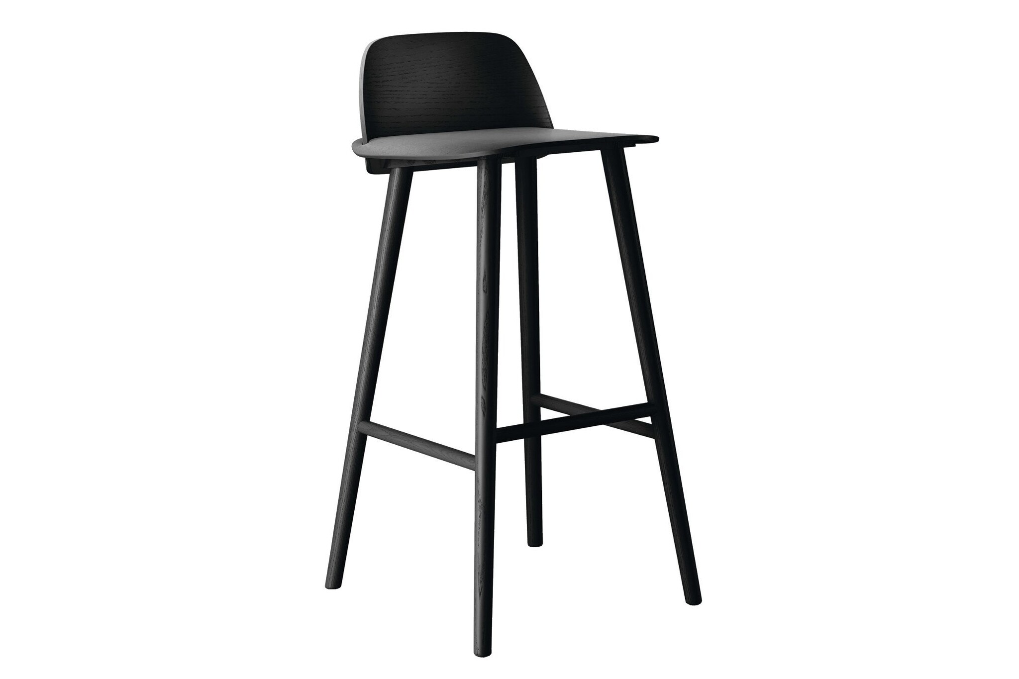 De vorm van Nerd barkruk nodigt de gebruiker te zitten op de kruk vanuit verschillende invalshoeken, geholpen door de zachte, bochtige multiplex zitschaal. De lage rugleuning van de barkruk geeft een prettige ondersteuning en comfort. Gebruikt materiaal van de Muuto Nerd barkrukken: natuurlijke eiken of gelakt essenhout en leverbaar in de volgende kleurenopties: natuurlijke eiken, grijs, aardolie, groen, roze, rood, zwart.