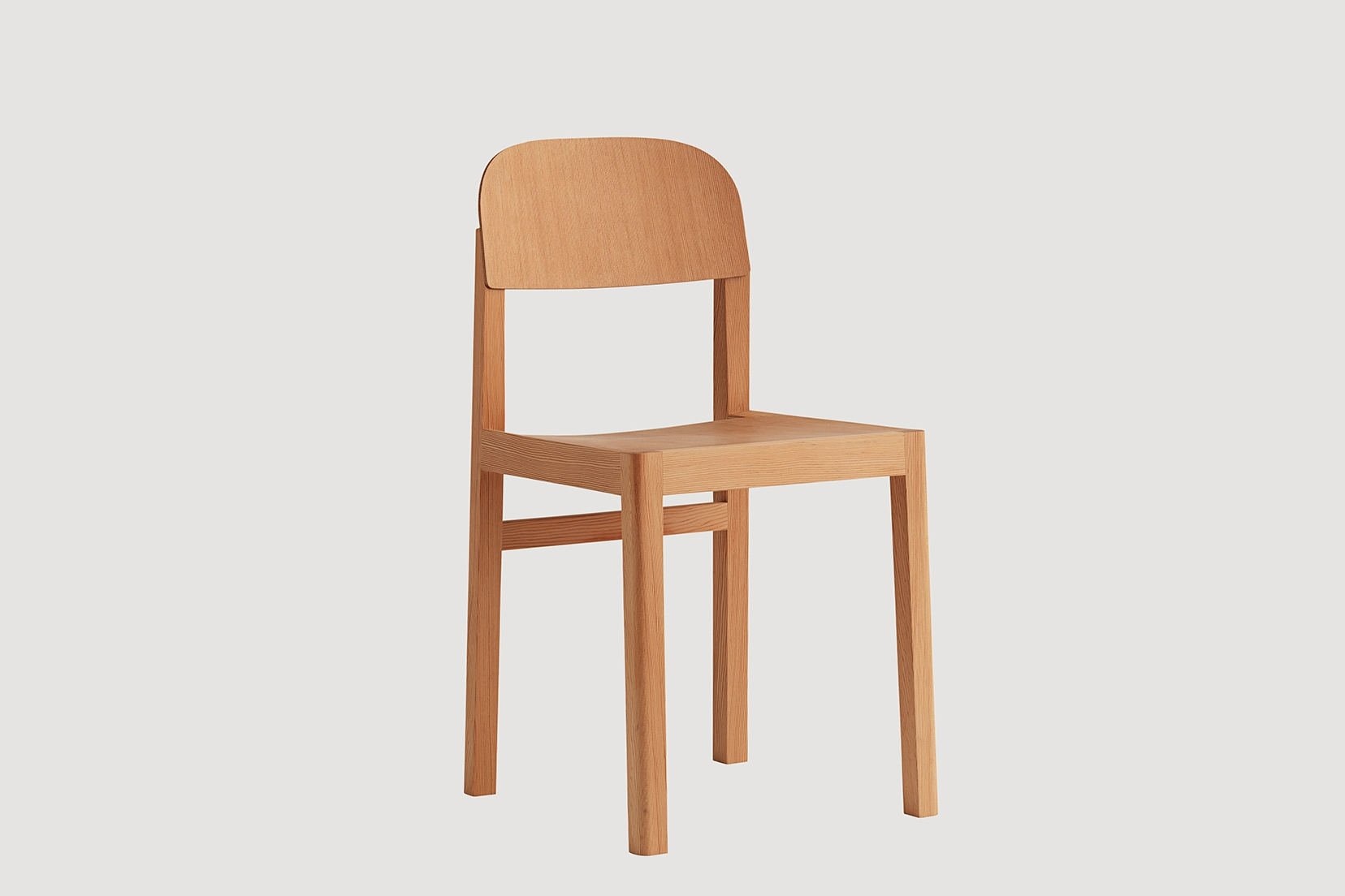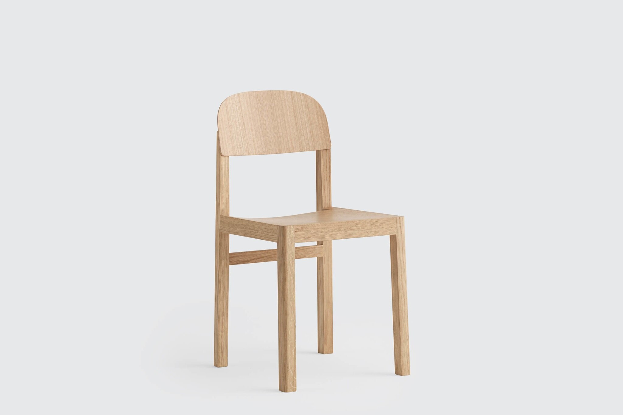 De Muuto Workshop Chair is een eerlijke en sierlijke stoel. De stoel heeft weinig details, maar de details die er zitten zijn subtiel en strak. Zijn verfijnde gewichten en de zichtbare houten nerven geven de stoel een stoere uitstraling, vandaar zijn naam: Workshop. De Muuto Workshop Chair stoel is gemaakt van eikenhout en is in mat of glans verkrijgbaar. Het frame en de poten zijn gemaakt van solide hout en de rugleuning en zitting zijn van fineerhout.
