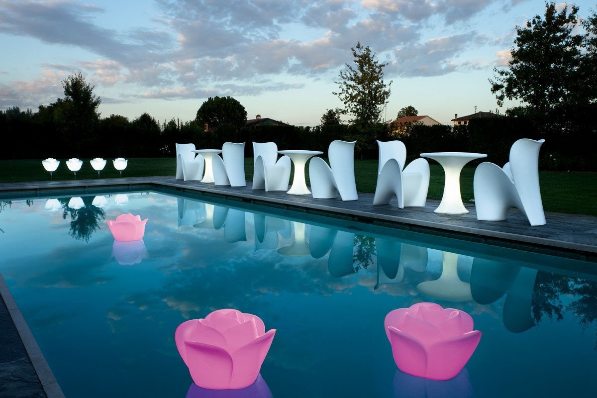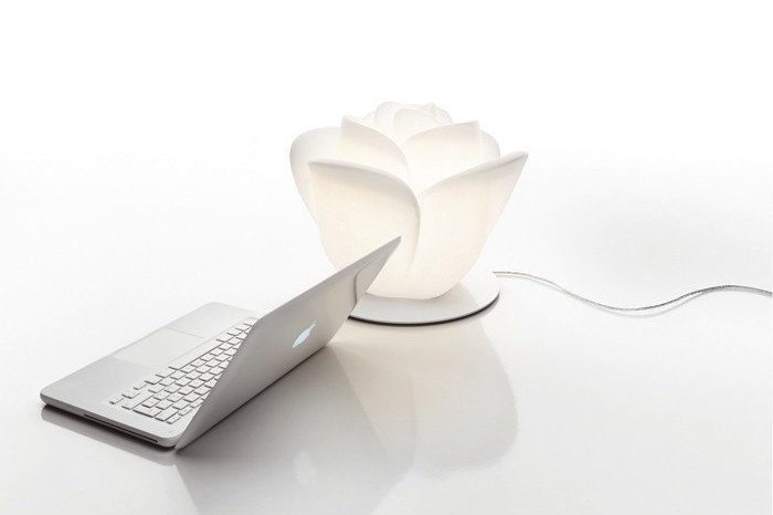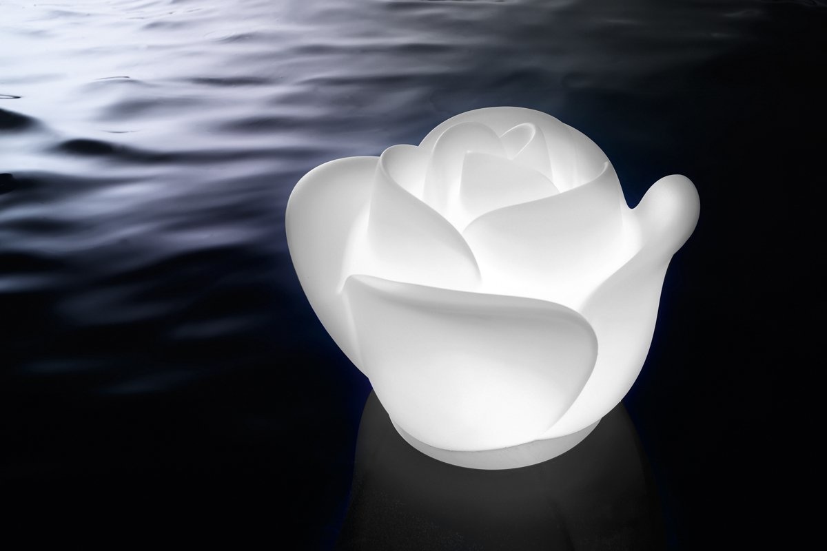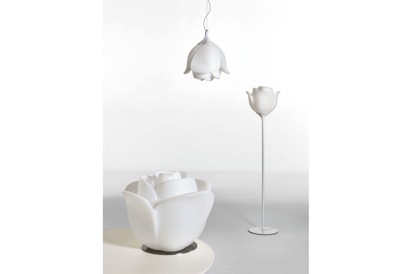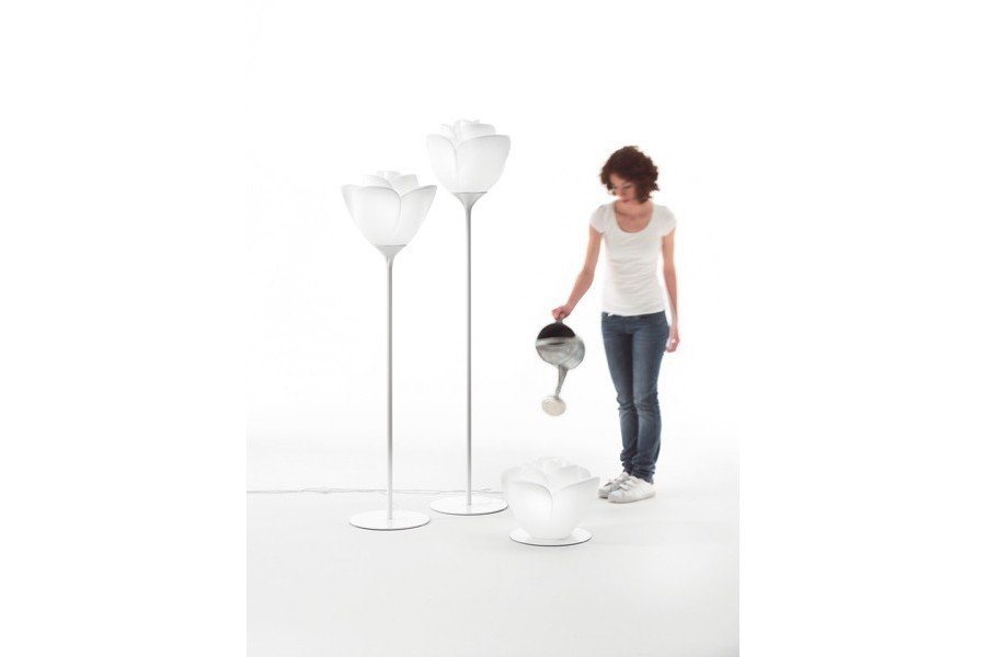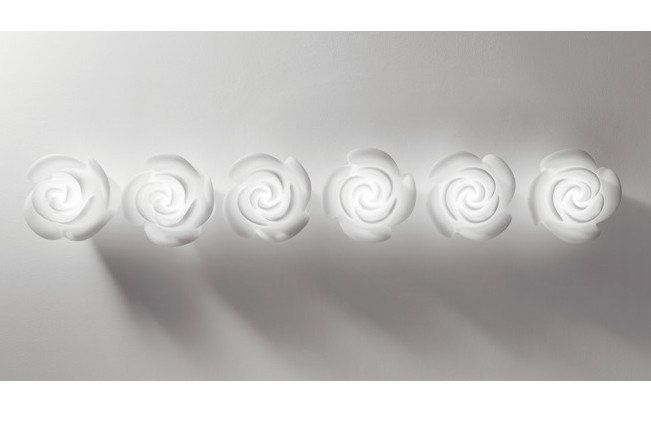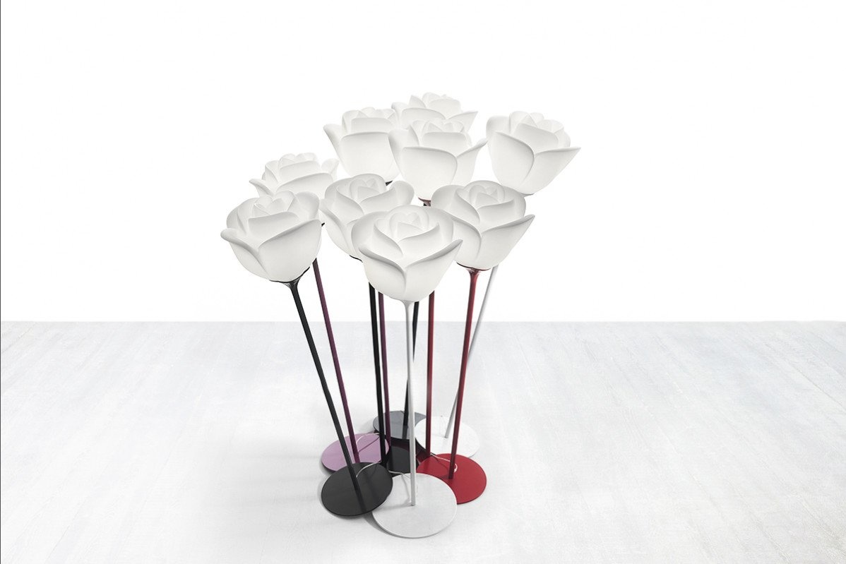 Myyour Baby Love lamp-collectie bestaat uit een staande lamp, een plafondlamp, een wandlamp en een buitenlamp. Het gestileerde beeld van een roos geeft een originele vorm aan deze lamp. Ontworpen door: Moredesign.