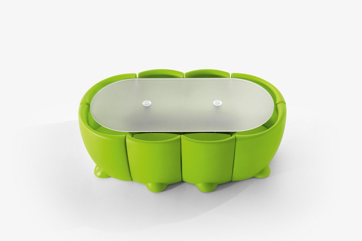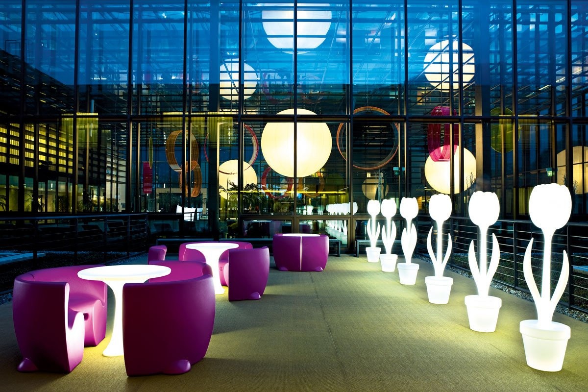 Myyour Community tafel is voor binnen en buitengebruik. De Community set bestaat uit 4, 6, 8 of 10 zitplaatsen en een tafel. De grotere tafels zijn van het model Joe. De tafel is leverbaar met of zonder LED verlichting. Ontworpen door Moredesign.