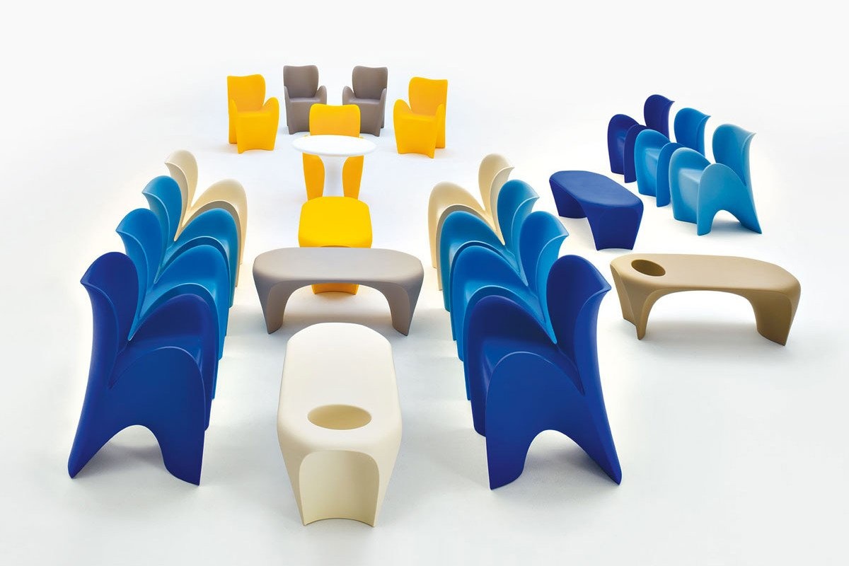 De wereld van bloemen inspireerde deze nieuwe lijn van de stoelen. De structuur kan worden beschreven als dynamisch en golvende vormen die zijn ontworpen om leven en energie te geven aan informele en vriendelijke ruimte. Simpele figuren lijken tot leven te komen en op een natuurlijke manier zichzelf te transformeren naar vormen die ons herinneren aan planten of bloemen, met behoud van hun ergonomische eigenschappen en de mate van comfort.