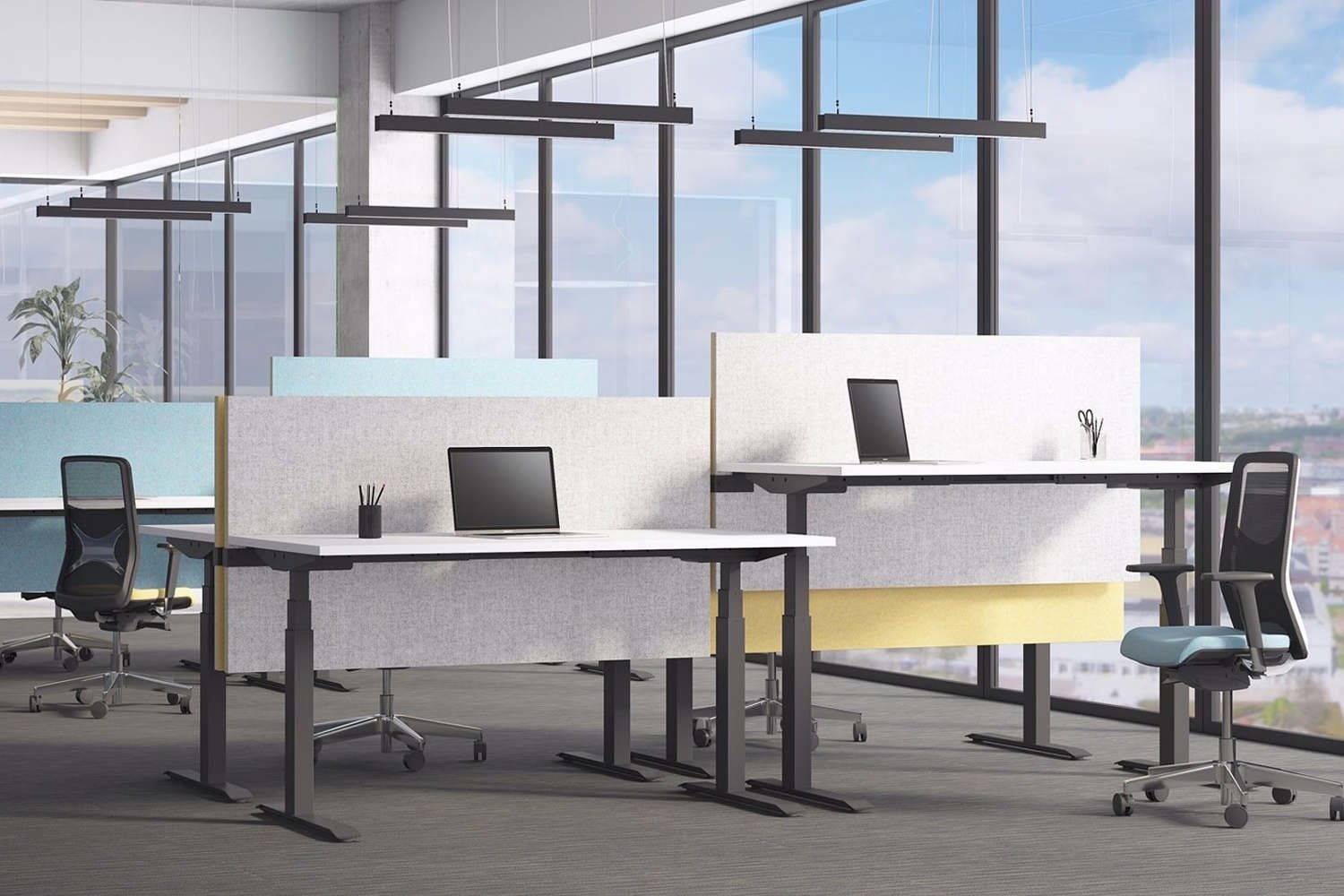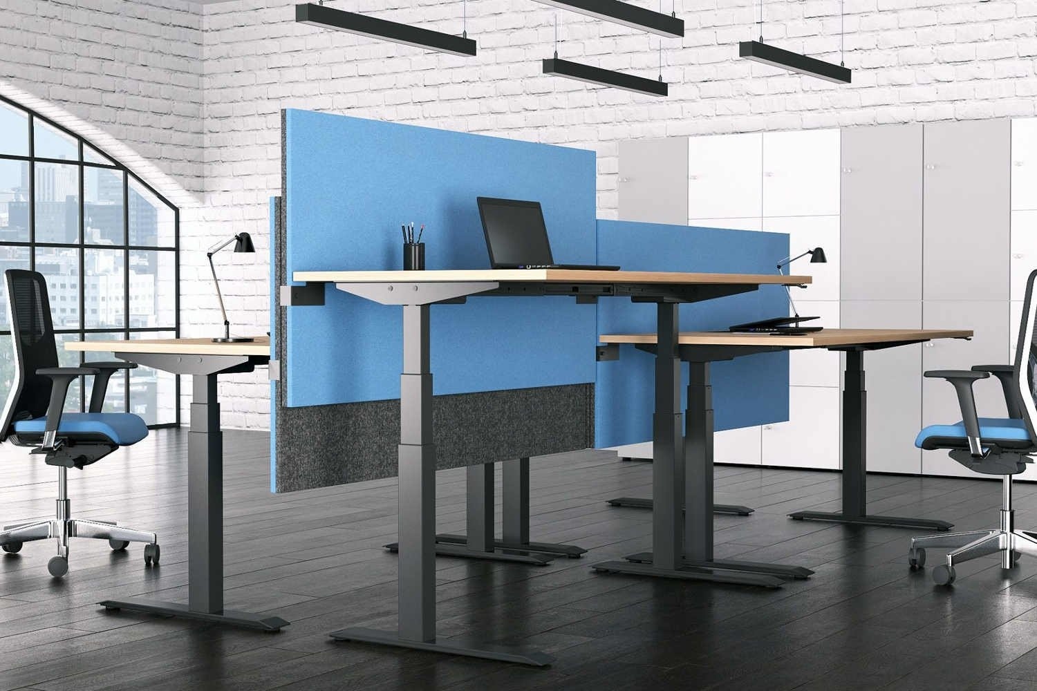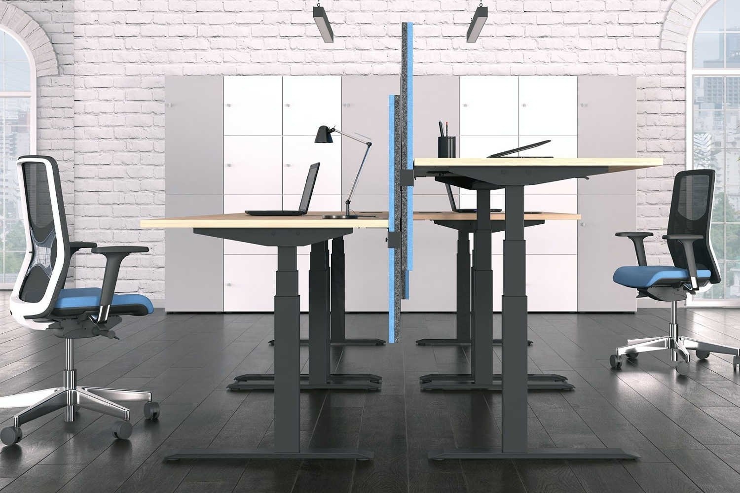 De Tint Desk Duo zit-sta werkplek is geschikt voor iedere kantooromgeving