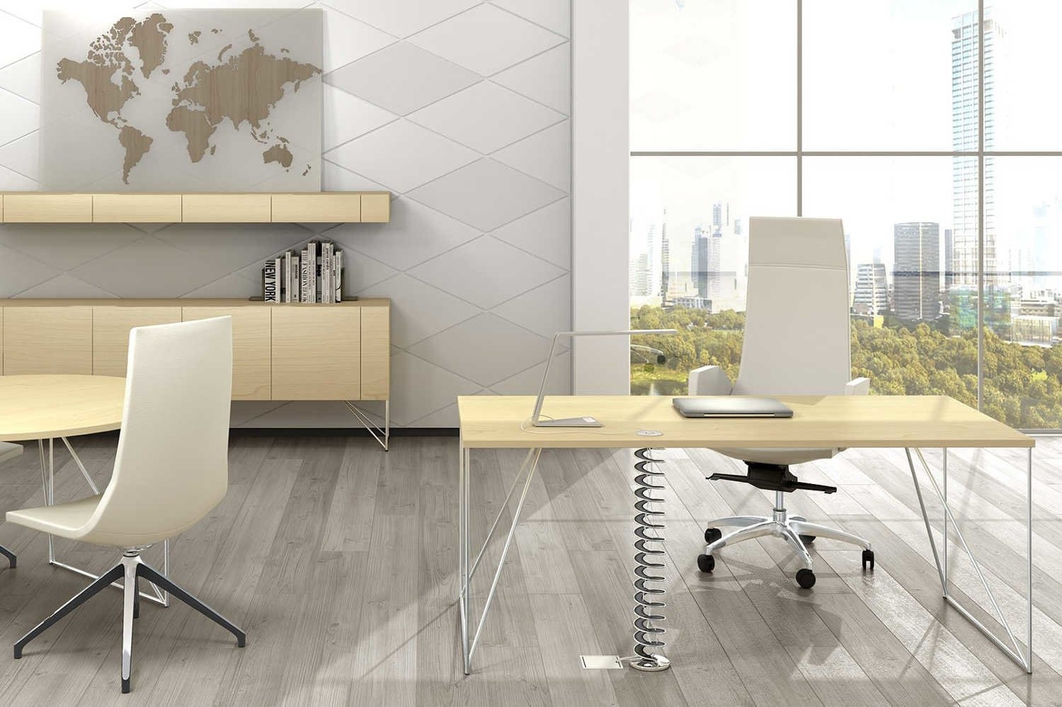Narbutas AIR Executive is een directiebureau met een moderne uitstraling. Zeker door het ranke onderstel van metaal oogt deze werkplek open en straalt ook rust uit.Door de keuze in verschillende houtkleuren kunt u een kleur kiezen die bij u en de rest van het bedrijf past. Voor in de directiekamer past de Narbutas AIR Executive werkplek prima. Doordat er eigenlijk maar door 1 persoon aan het bureau werkt, de directeur, is het niet nodig om de hoogte elke keer af te stellen. Deze werkplekken zijn daarom in vaste hoogtes leverbaar. Afhankelijk van de dikte van het tafelblad is de werkplek 74 of 78 cm hoog.
