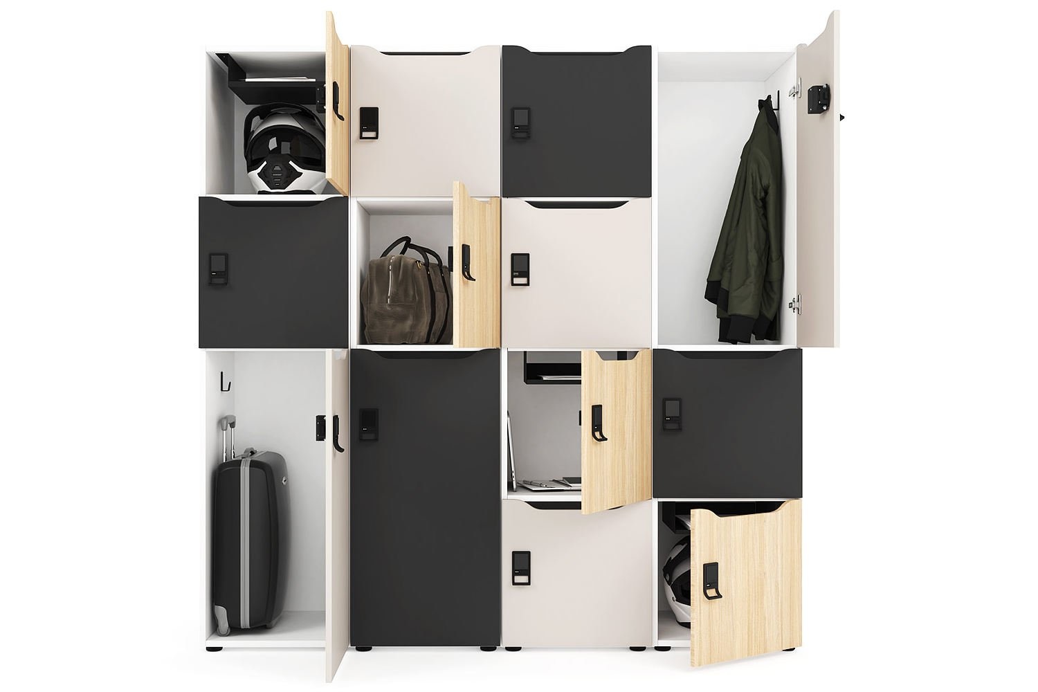 4 soorten sloten: Naast de traditionele sleutelvergrendeling zijn de lockerkasten ook af te sluiten met een combinatieslot of een en elektronische slot (te openen door een code of een kaart).
