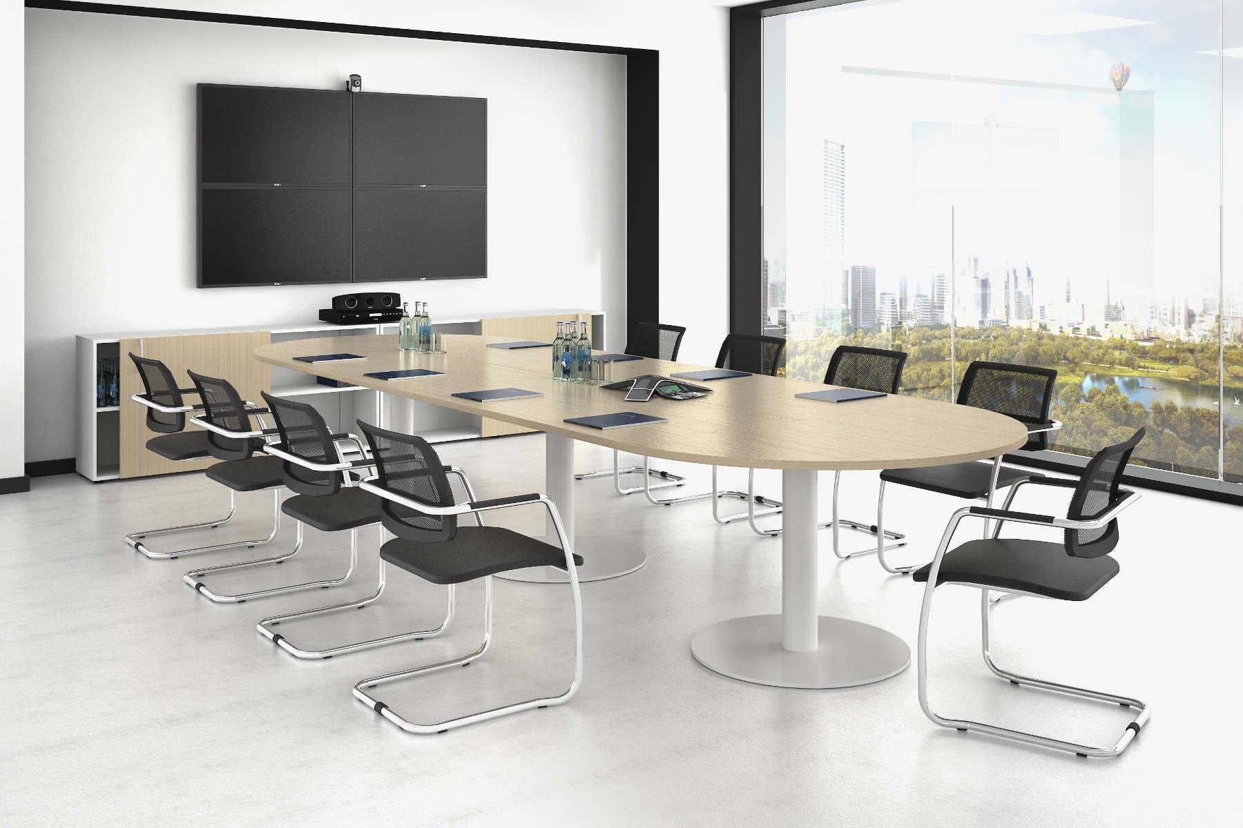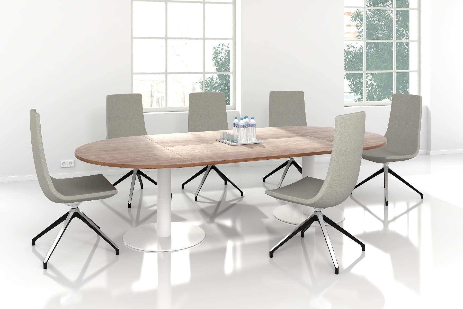 De tafelbladen zijn rond of ovaal. Dit bevordert de communicatie tussen uw collega’s en geeft een warme uitstraling.