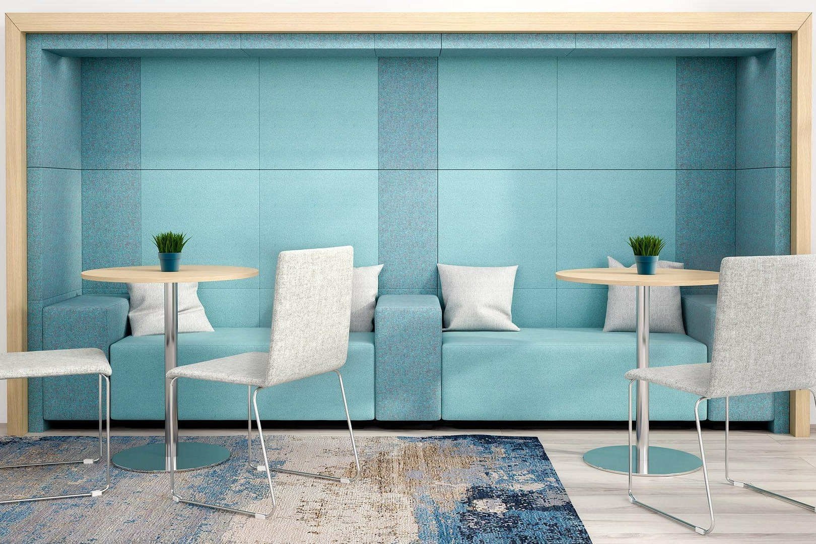 De akoestische panelen fungeren als een sonische spons die afleidende geluiden opzuigt en galm vermindert, voor akoestisch comfort in uw werkomgeving.