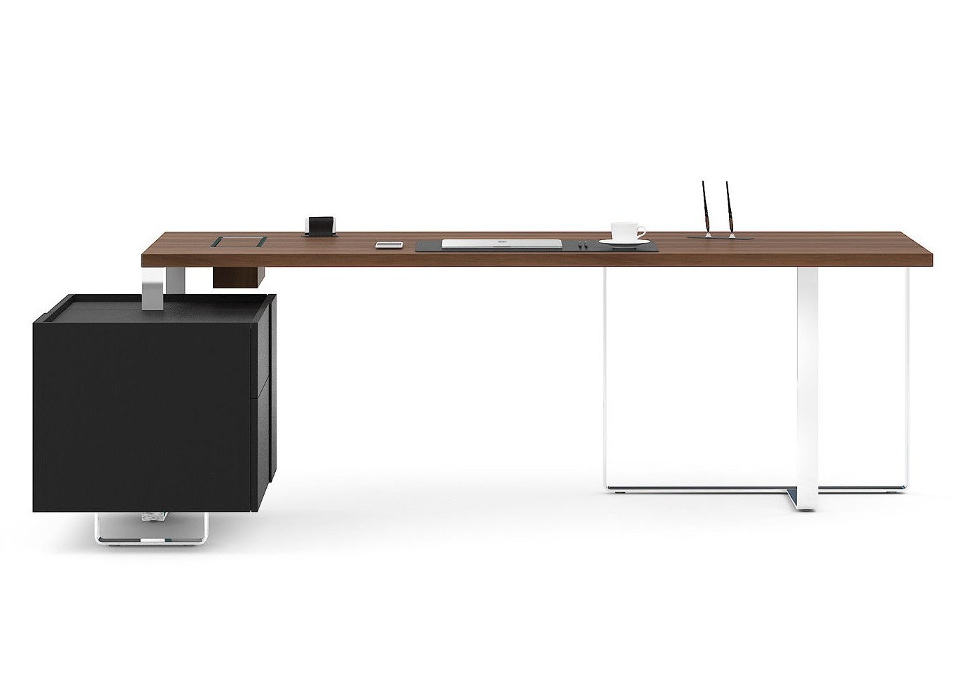 Narbutas Plana is een directiebureau waarbij verschillende opstellingen mogelijk zijn. Zo heeft u een werkplek waarbij aan de linker of rechterkant ladeblokken geplaatst kunnen worden. Deze ladeblokken zijn poot vervangend en ideaal om uw persoonlijke eigendommen in op te bergen. Het elegante onderstel van dit directiebureau geeft een strakke maar ook klassieke uitstraling. Door de keuze in verschillende houtkleuren van het werkblad en ladeblokken kunt u uw eigen stijl creëren die bij u en de huisstijl van uw bedrijf past. De tafelbladen zijn voorzien van een mooi afgewerkt klepje waar een stekkerdoos in geplaatst kan worden om zo direct toegang te hebben tot stroompunten om uw apparaten, zoals laptop of telefoon, op te kunnen laden.