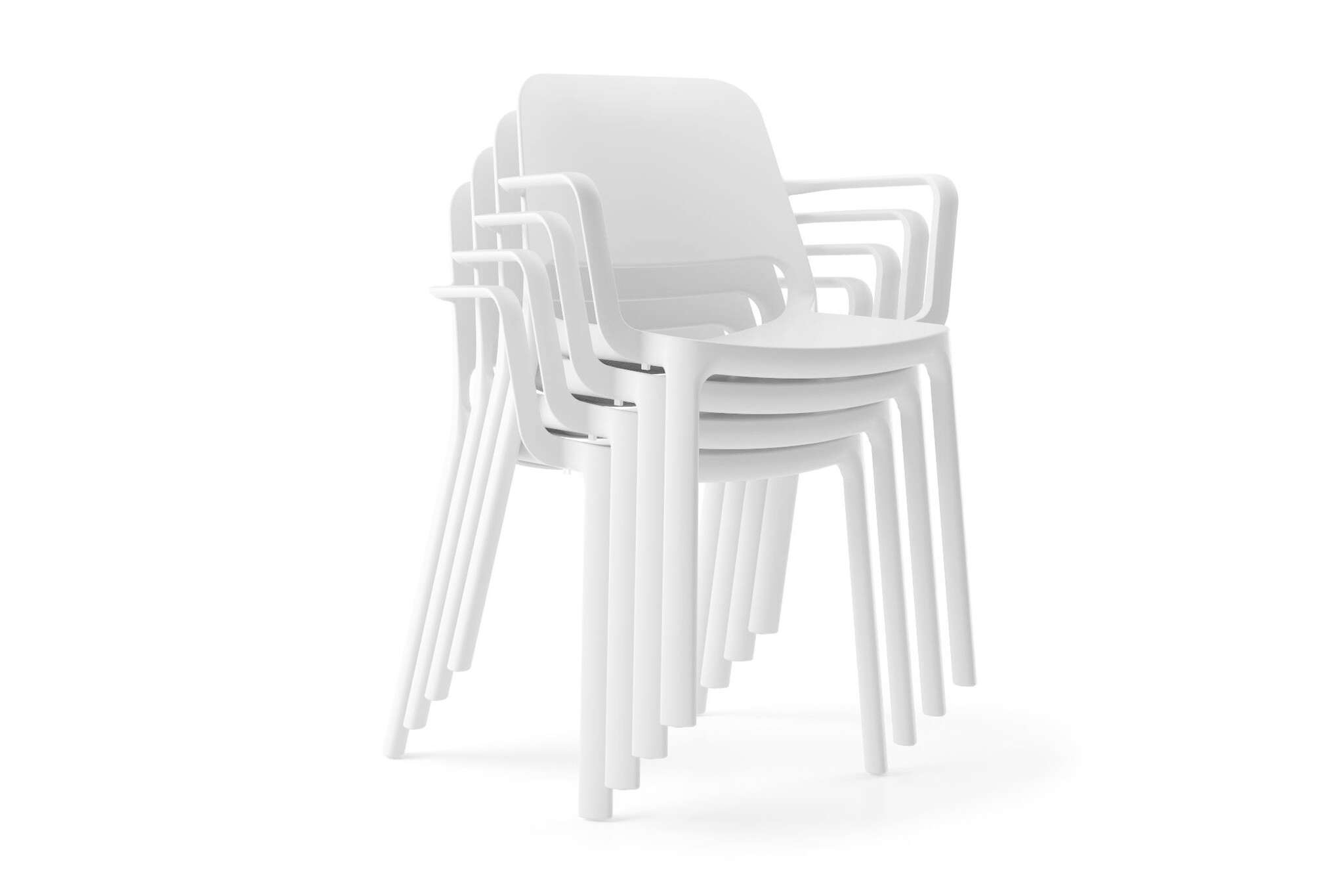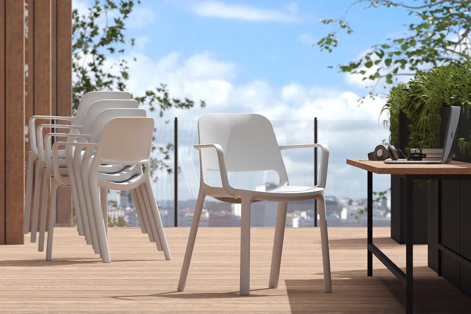 De Narbutas Polytone O is een robuuste stoel voor buiten en gemaakt van gerecycled kunststof. Het grote voordeel van deze stoelen is dat ze stapelbaar zijn en omdat u ze op een trolley kan plaatsen rijdt u ze makkelijk weg naar de plaats van bestemming. Hierdoor is deze stoel goed toepasbaar op een buitenterras. Tot slot kunt u kiezen voor de variant met of zonder armleuningen. Kenmerken Narbutas Polytone O