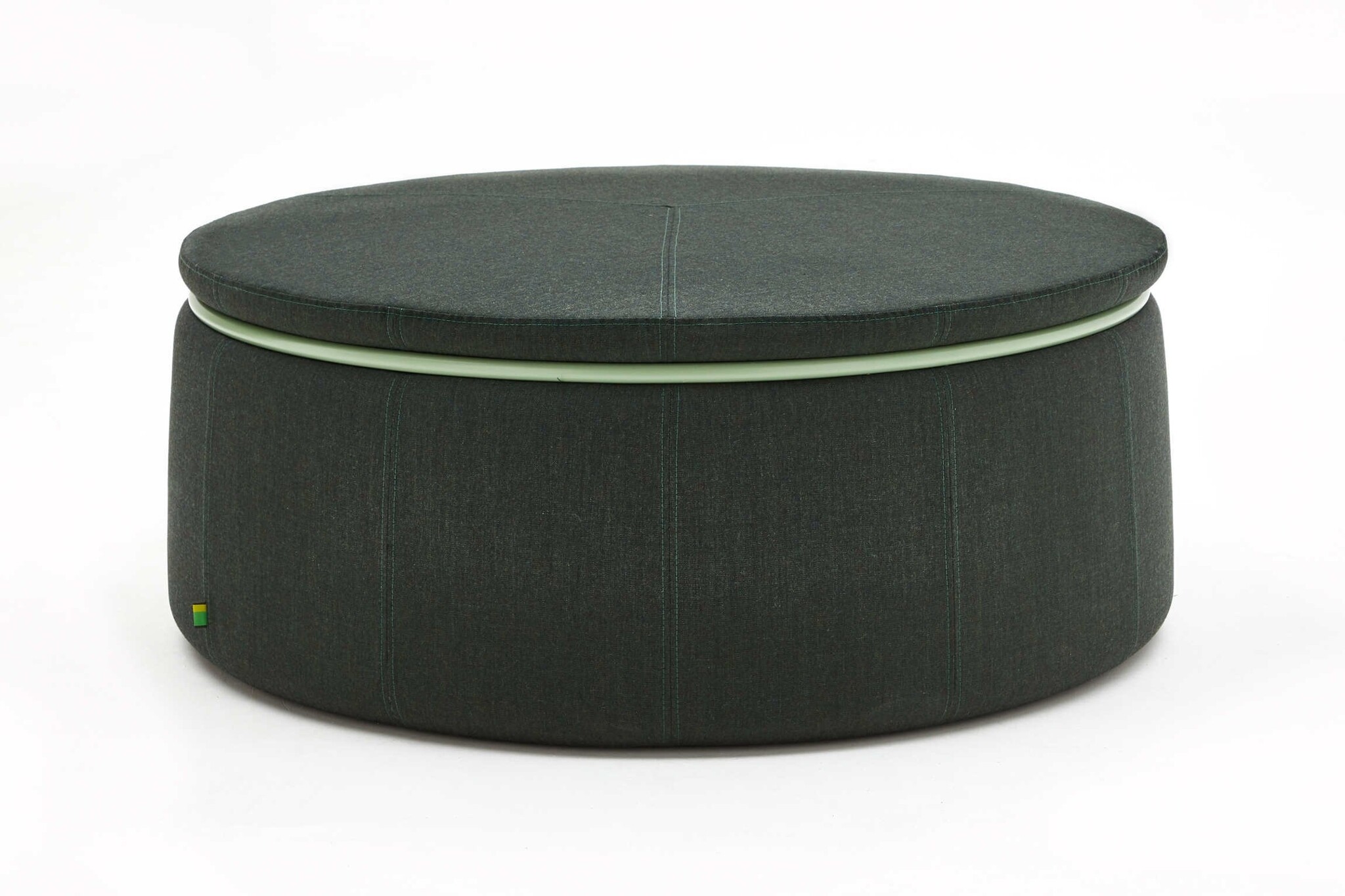 De ronder ring om de poef is standaard leverbaar in wit of zwart of gepoedercoat in de 16 RAL kleuren uit de Naughtone kleurencollectie.