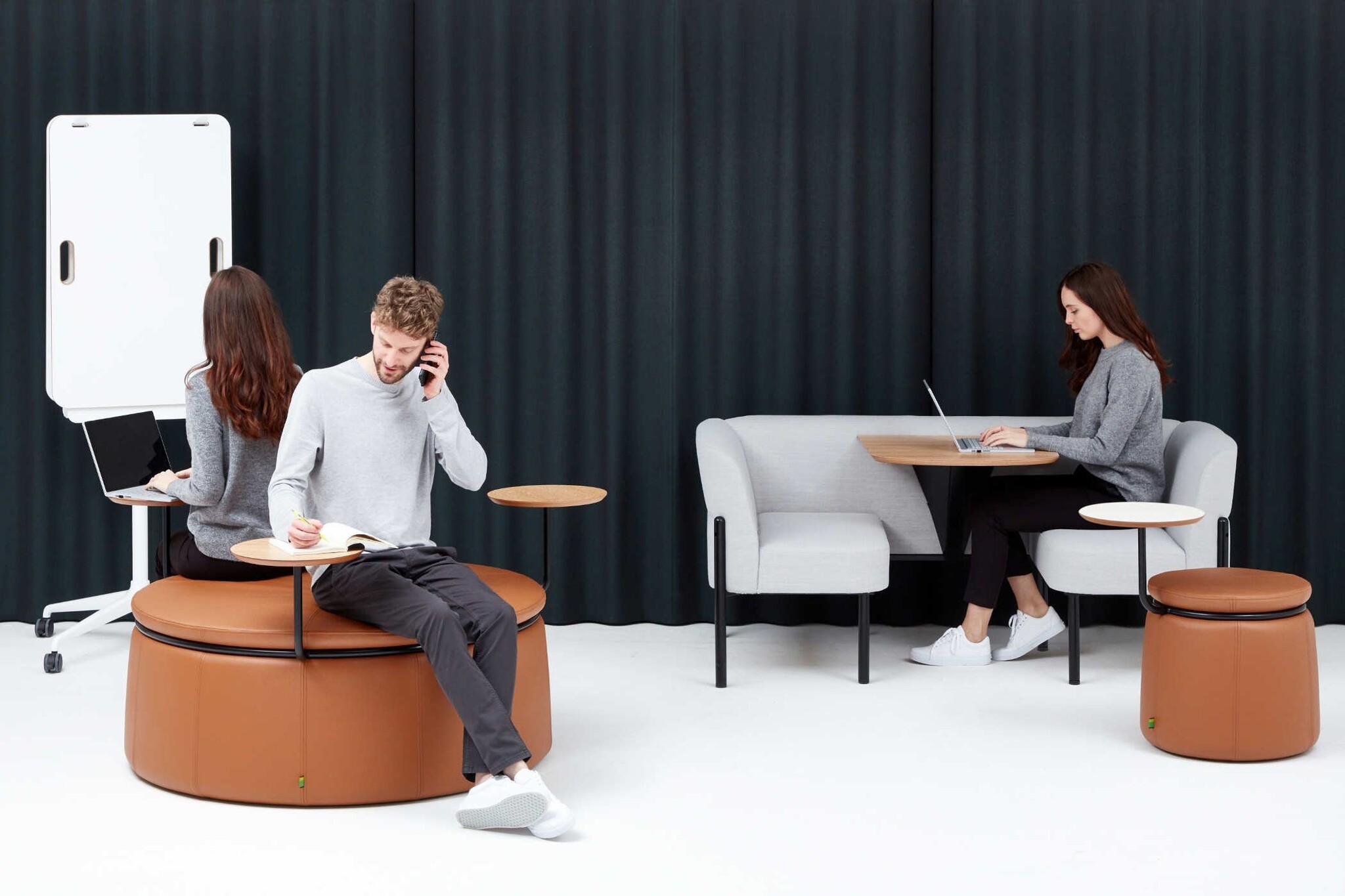 De Naughtone Lasso is een poef met een tafelsysteem dat eenvoudig kan worden verplaatst. Het zitgedeelte van Lasso is bij uitstek geschikt in open ruimtes of om aan te schuiven bij een collega op je werkplek. Eigenschappen van de Naughtone Lasso poefenserie