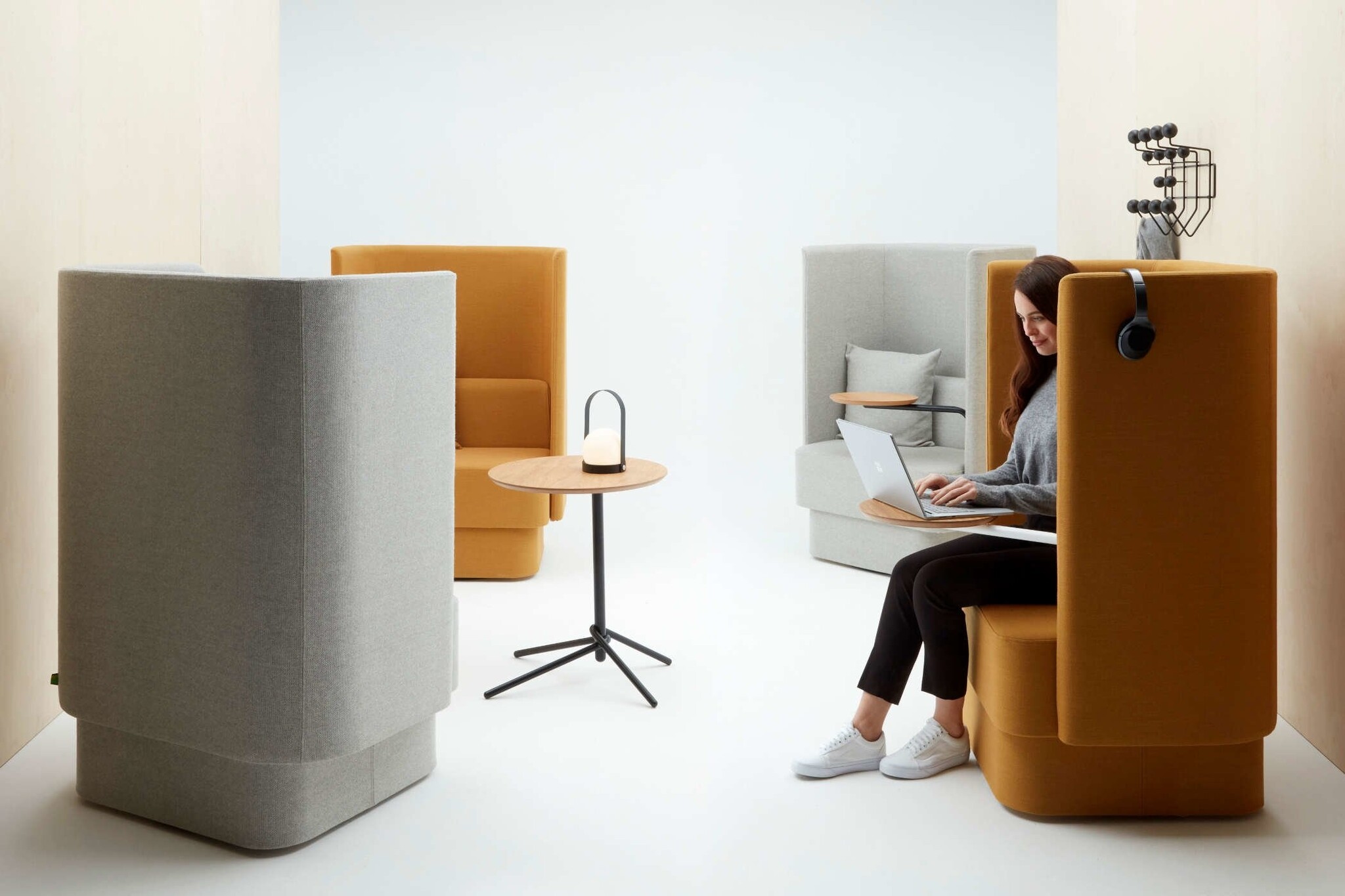 De Naughtone Pullman Chair maakt deel uit van het bredere assortiment Pullman-producten met hoge rugleuning. Deze Pullman Chair is een stoel voor één gebruiker die fungeert als een akoestisch toevluchtsoord voor individueel werken of om je even terug te trekken. Eigenschappen van de Naughtone Pullman Chair