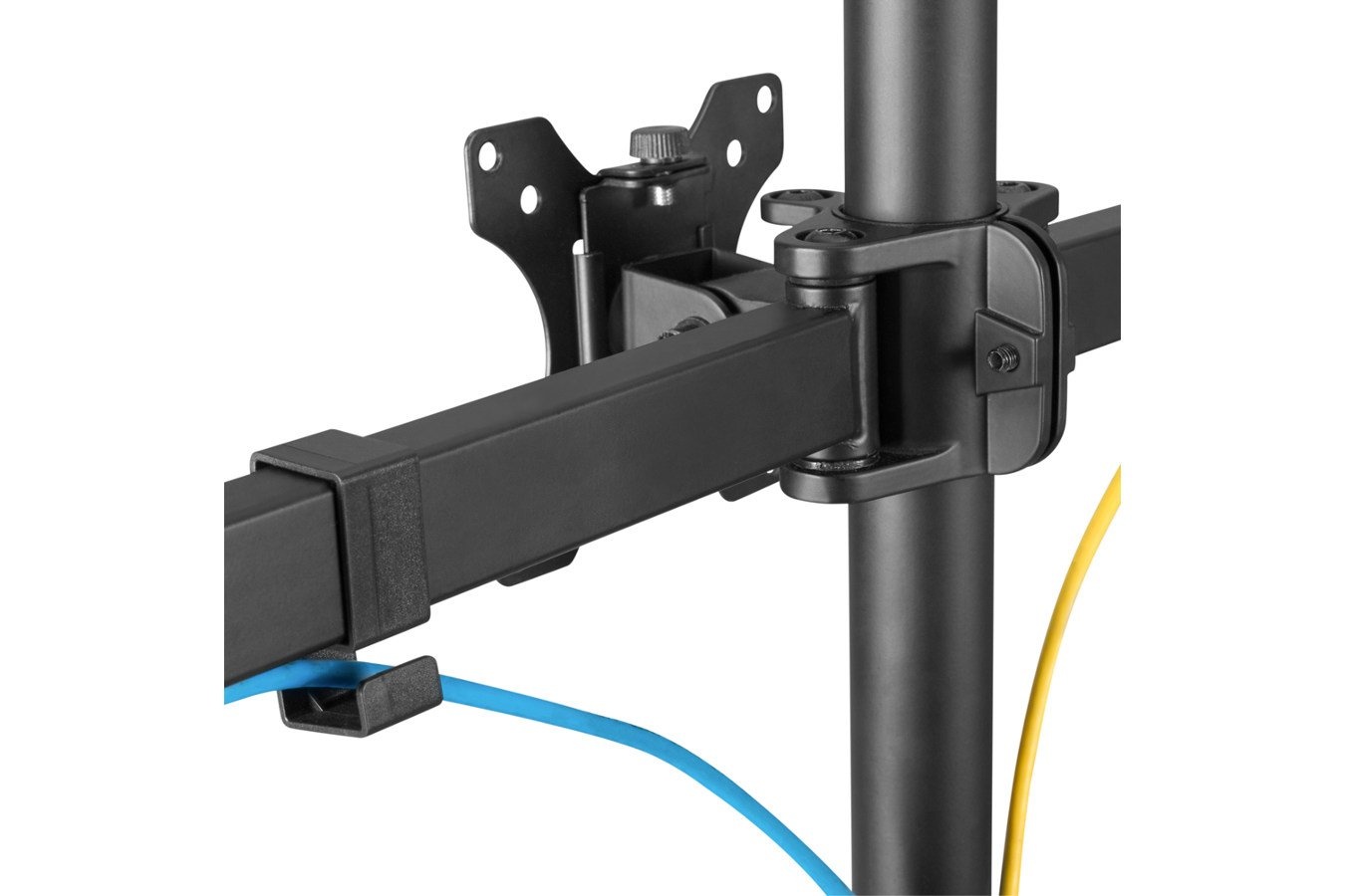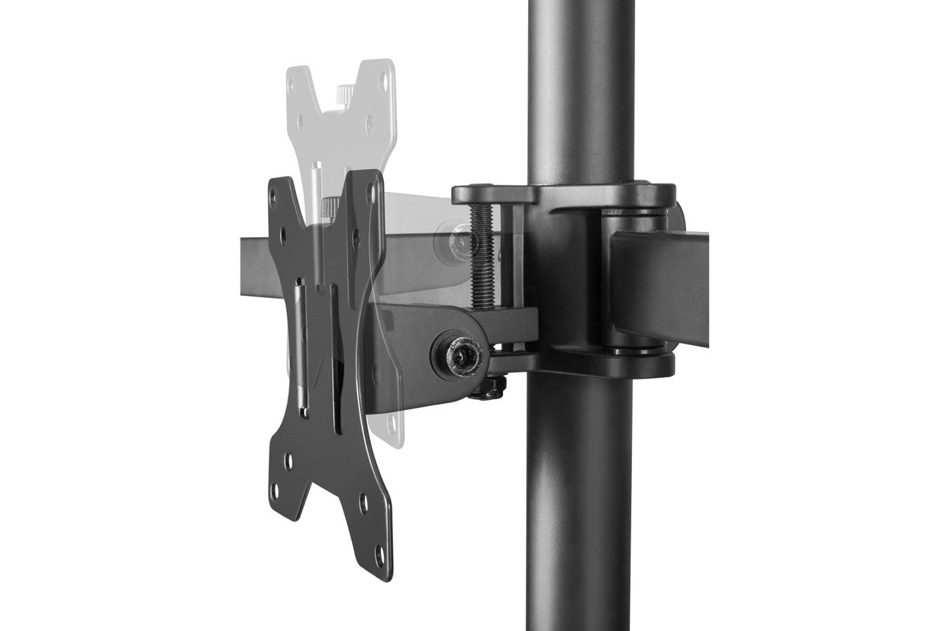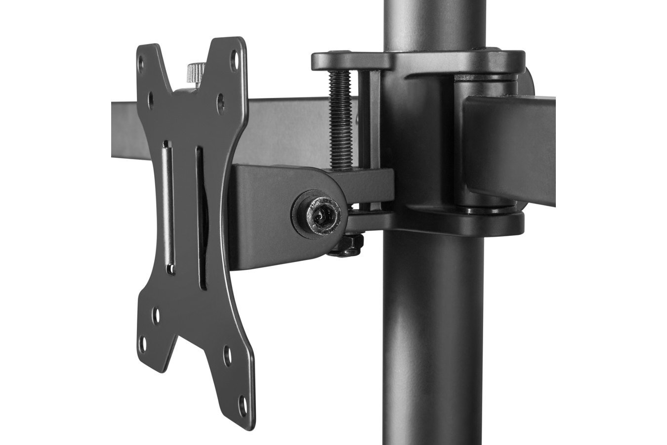 Wanneer u niet de beeldschermen op de juiste hoogte heeft, kan dit uitlopen tot rug- en schouderklachten. Het is dan ook van belang dat u uw monitorarm op de juiste hoogte instelt. De schermen zelf zijn via schroefjes te bevestigen aan de VESA-plaatjes. Dit is een gaatjessysteem wat voor de meest gangbare monitoren van toepassing is. Bovendien heeft deze monitorarm een quick release waardoor de monitoren eenvoudig aan de arm gemonteerd kunnen worden of ervan afgehaald kunnen worden.
