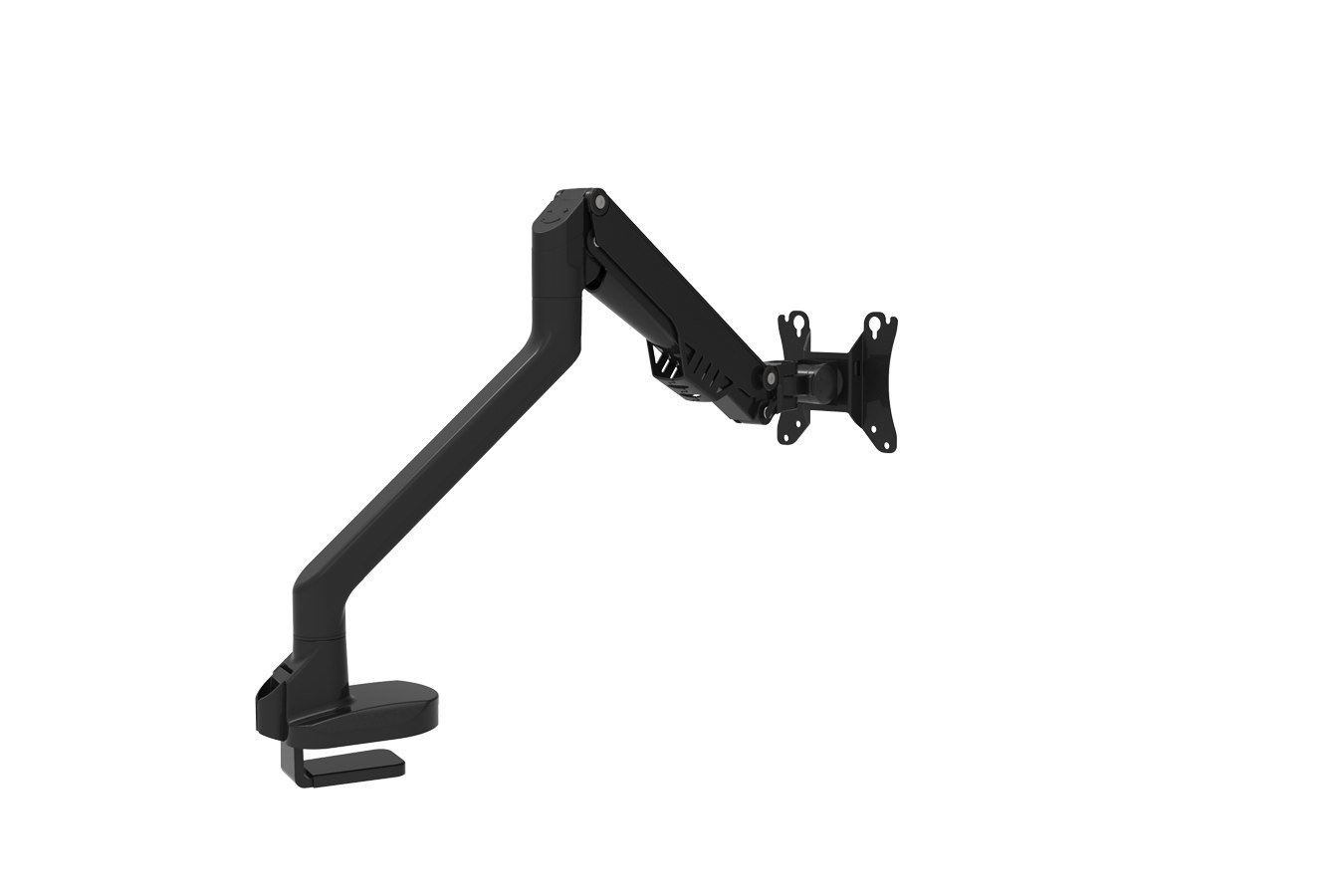 De monitorarm kan 90 graden kantelen, 360 graden zwenken en 180 graden roteren. Het systeem wat wordt gebruikt voor de monitorarm om deze te verstellen is een gasveer. U heeft tot 5 jaar recht op garantie