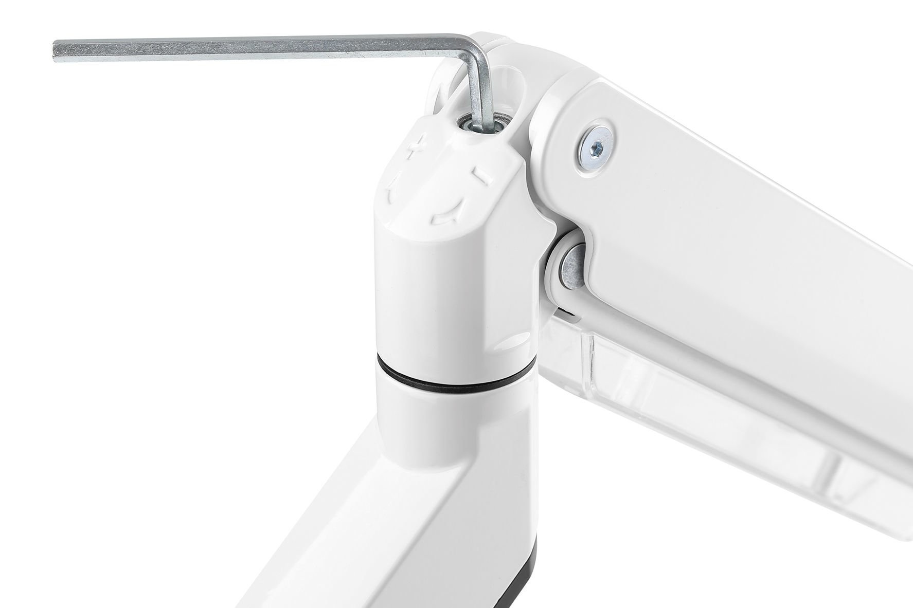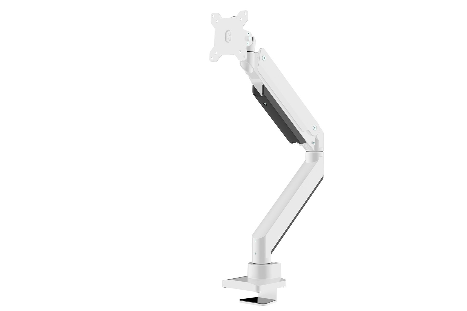 Deze monitorarm is toepasbaar voor 1 beeldformaat van 254 mm tot 812,8 mm. De arm is beschikbaar in de kleuren: wit, zilver en zwart. Het maximale gewicht voor deze arm is 16 kilo. VESA van: 75 x 75 mm – 100 x 100 mm, VESA is een veelvoorkomend monteersysteem doormiddel van gaatjes. U kunt de arm monteren via een bureauklem of bureaudoorvoer. De monitorarm kan 90° kantelen, 360° zwenken, 180° roteren. De arm beschikt over een stopmechanisme bij 180 graden, waardoor hij niet meer verder kan draaien. De hoogteverstelling is met een gasveer. U heeft recht op 5 jaar garantie.