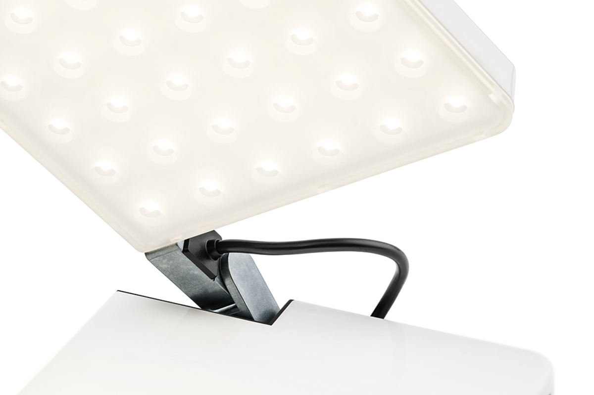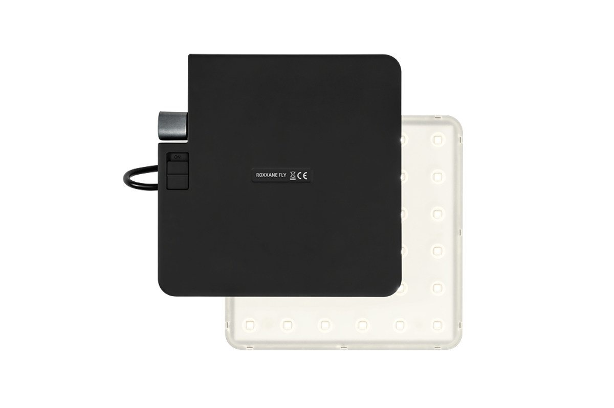 Roxxane Fly is een draagbare led lamp met een oplaadbare batterij. Roxanne Fly wordt gedimd met een touchless dimsysteem. De lamp kan 4 tot 20 uur (afhankelijk van gekozen helderheid) uur branden op de batterij. De lichtintensiteit is 400 lumen en de kleurtemperatuur 2700 kelvin, een warme lichtkleur. De kop van de Roxxane Fly is in alle richtingen verstelbaar. Door de magneet in het voetje kan de lamp op elk metalen oppervlak opgehangen worden. Kenmerken Nimbus Roxxane Fly lamp