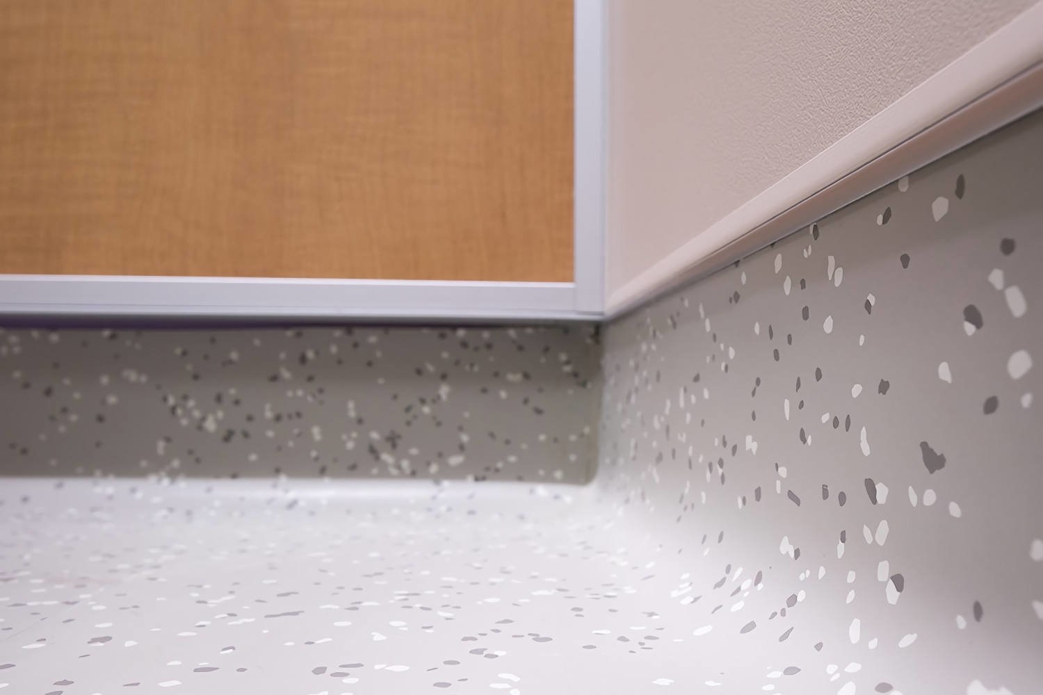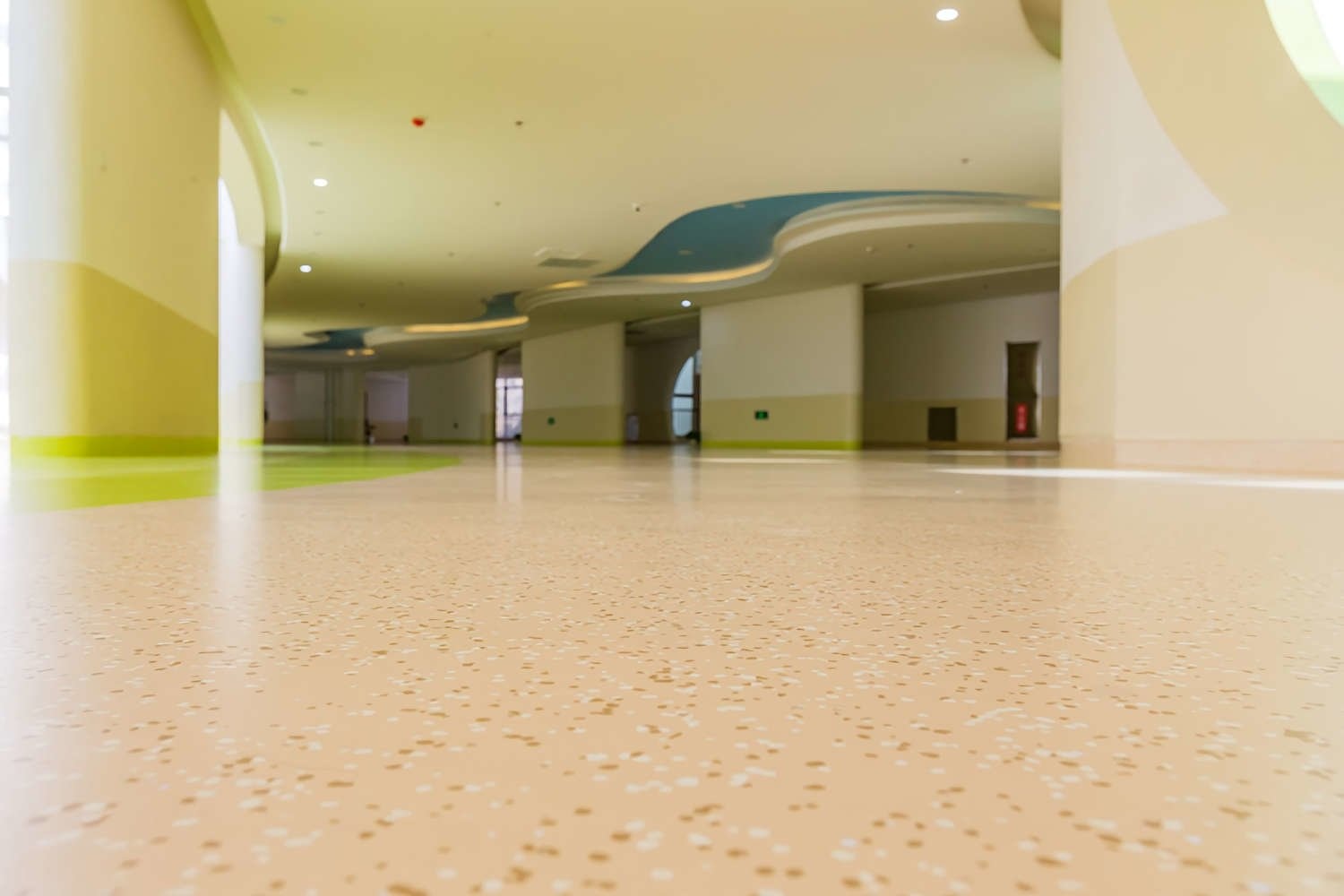 De Noraplan® Eco heeft een glad oppervlak en is uitgevoerd in 16 rustige basiskleuren met verwerking van op kleur afgestemde vlokken voor een modern accent.