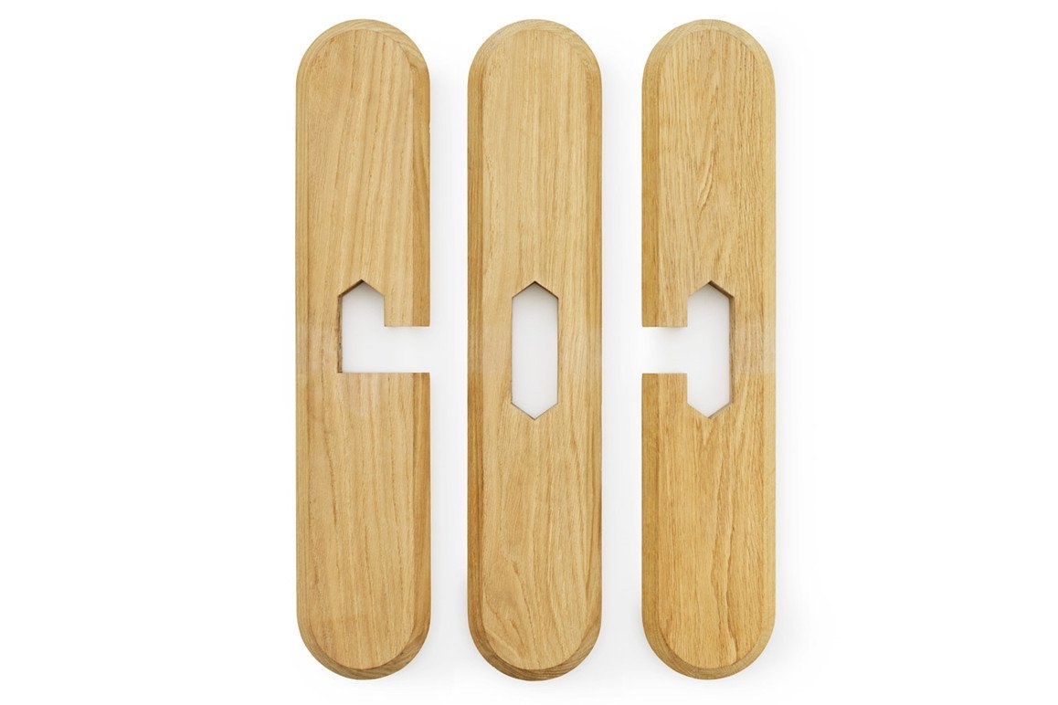 De Ding Table heeft een transparante of donkere glazen tafelblad en een eiken onderstel. De onderstellen zijn beschikbaar in de kleuren: eikenhout, koraal oranje en zwart.