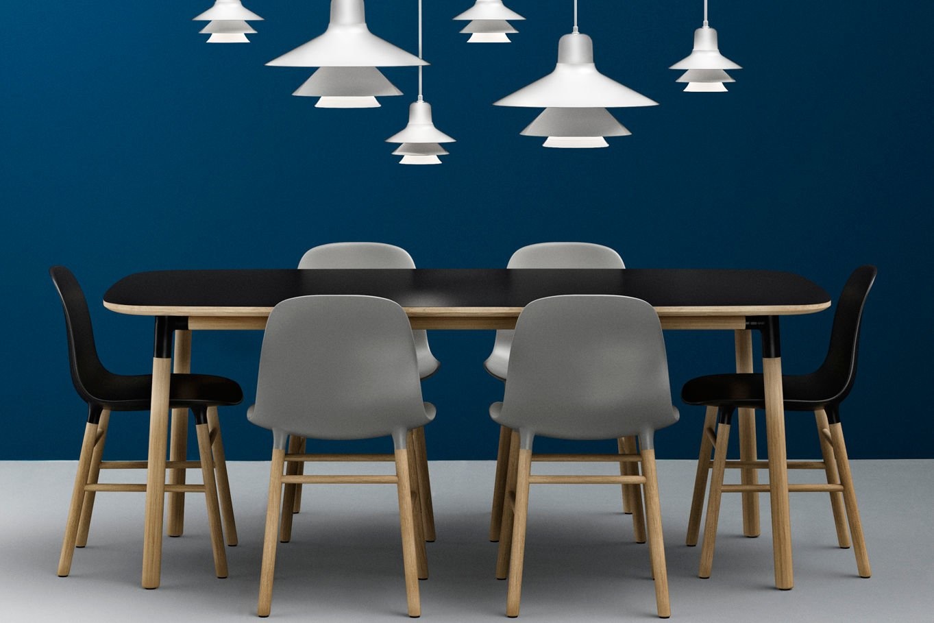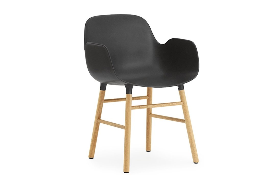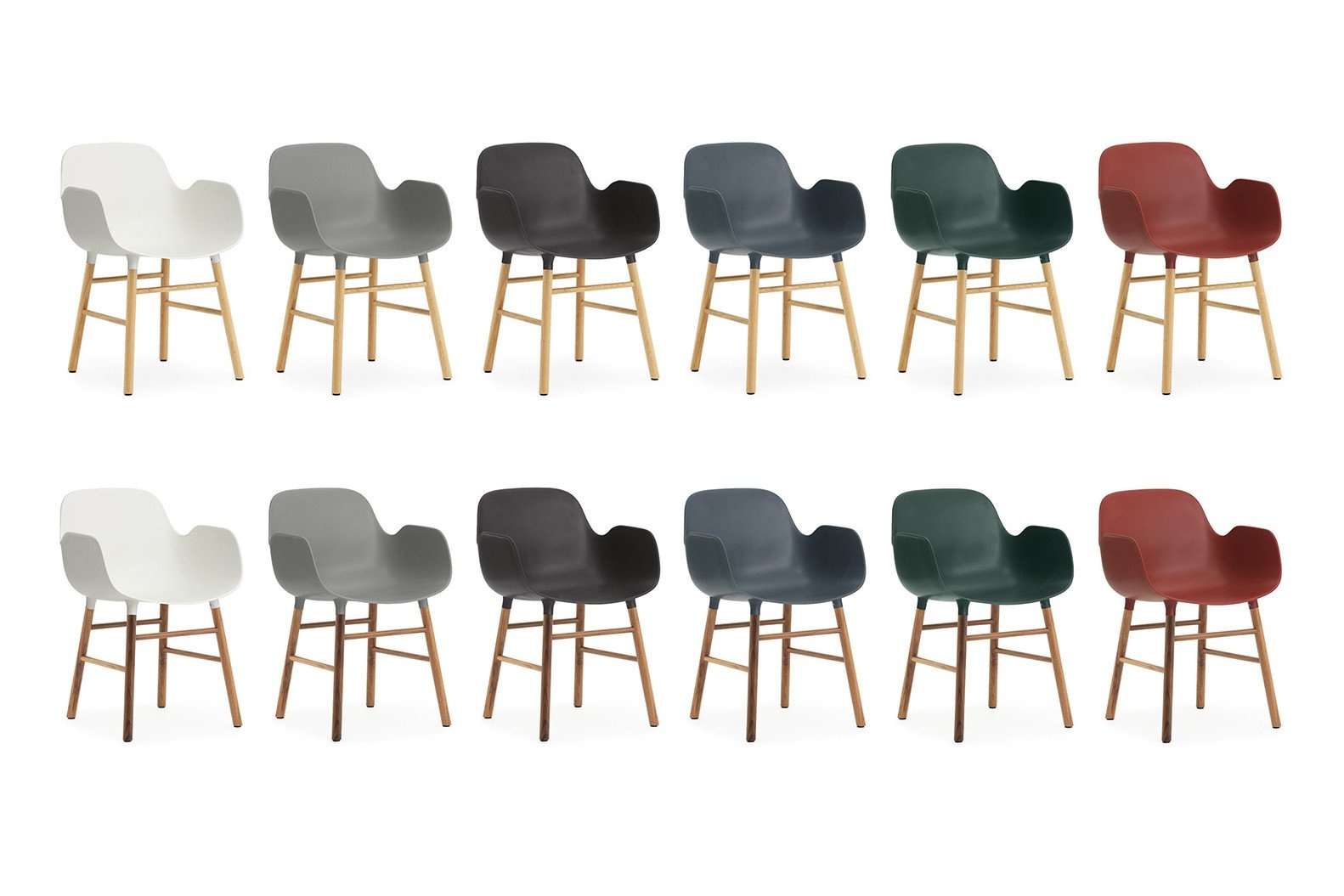 De Normann Copenhagen Form is verkrijgbaar als kantinestoel met of zonder armleuningen en als barkruk. De gegoten kunststof zitting en het frame van eiken, noten of staal zijn natuurlijk geïntegreerd met de stoel. De kunststof zitting en houten of stalen poten zijn elegant en accentueren de hoge kwaliteit vakmanschap van het ontwerp. De Form kantinestoel en barkruk passen ideaal in een bedrijfsrestaurant, kantine of bij andere horecagelegenheden. Afmetingen van de Normann Copenhagen Form stoel